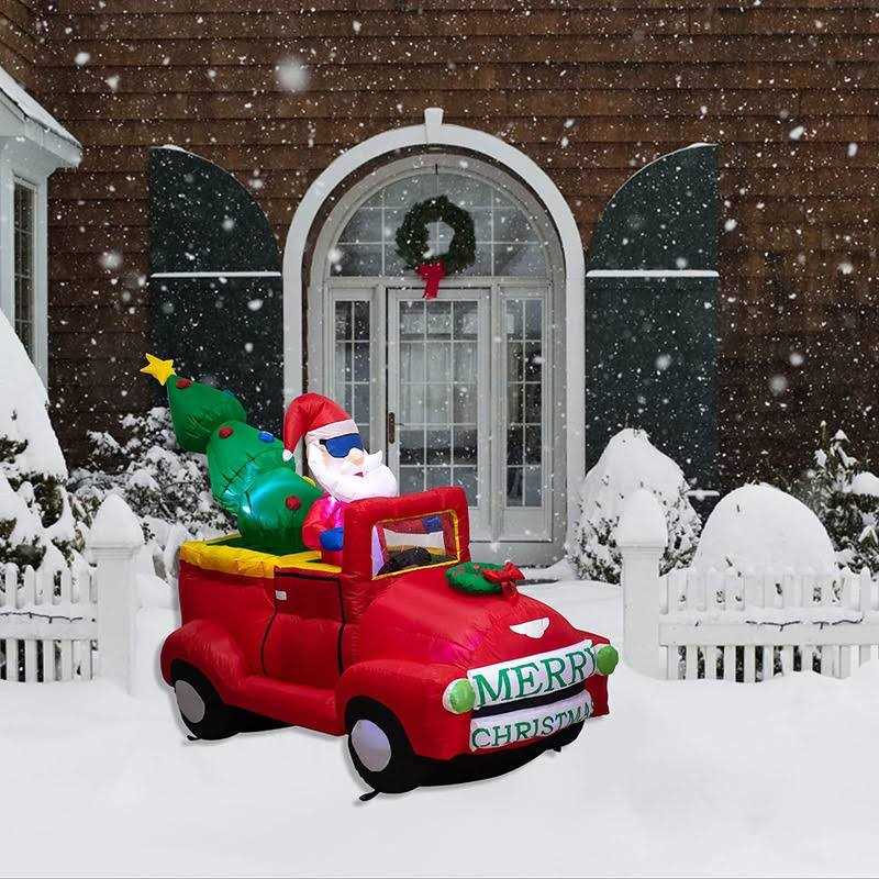 - TRMESIA Christmas Inflatable car Decoration Santa Drives Red Car Christmas Tree Inflatables with LED Lights Outdoor Yard to Blow Up decorations.