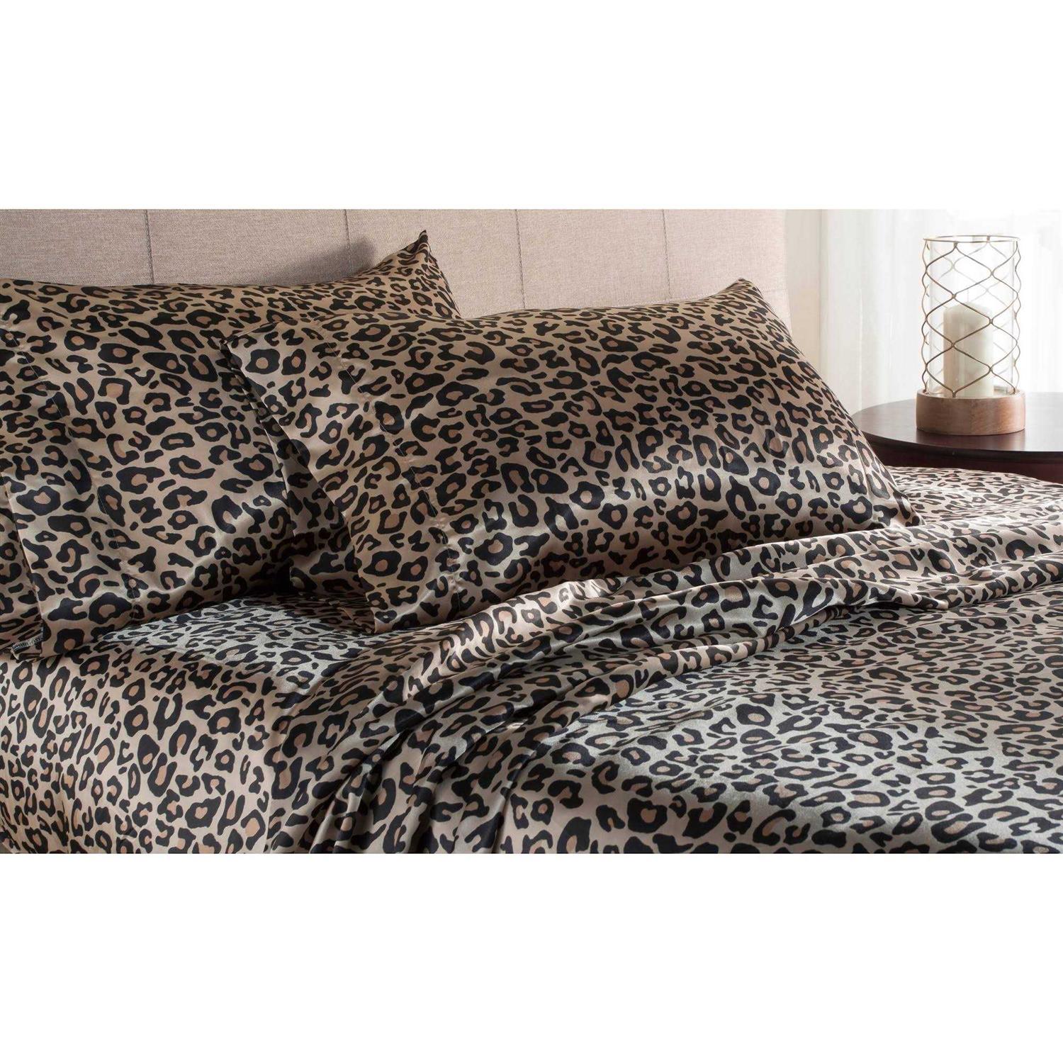 Elite Home Luxury Satin Sheet Set – Leopard – King