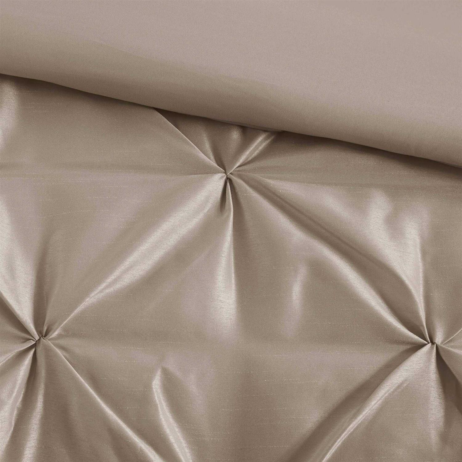 This beautifully tufted bed is from the Laurel Bedding Collection that features matching shams and a bonus decorative pillow.