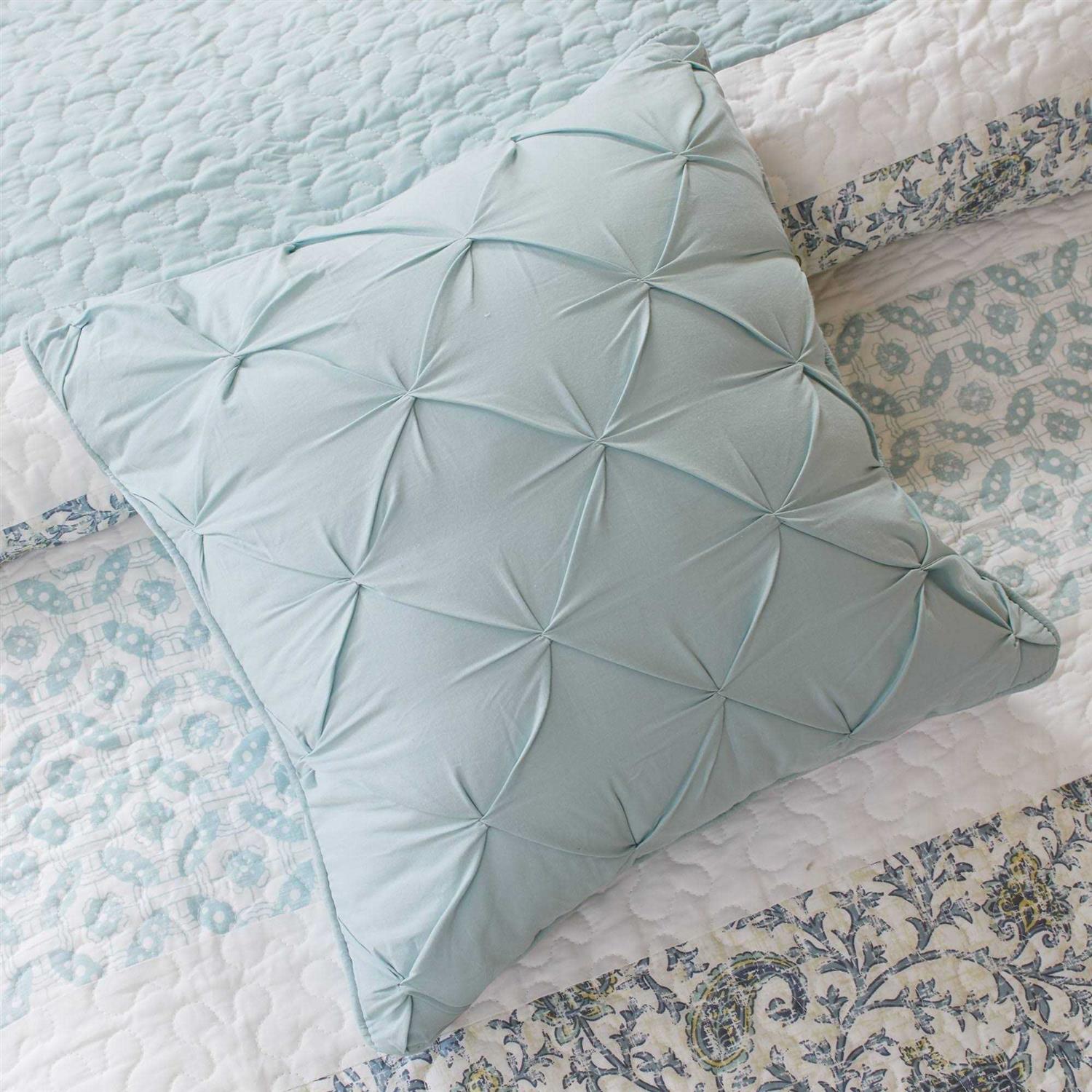 The Dawn 6 Piece Cotton Percale Reversible Coverlet Set offers a shabby chic update to your bedroom decor. A paisley print is featured on the cotton coverlet with pintucked fabric separated by lace taping embellishments. Matching shams mirror the design of the coverlet, while three decorative pillows and a solid bedskirt complete this reversible farmhouse coverlet set. This bedding set is also OEKO-TEX certified, meaning it does not contain any harmful substances or chemicals to ensure quality comfort and wellness. A coordinating shower curtain is available and sold separately.