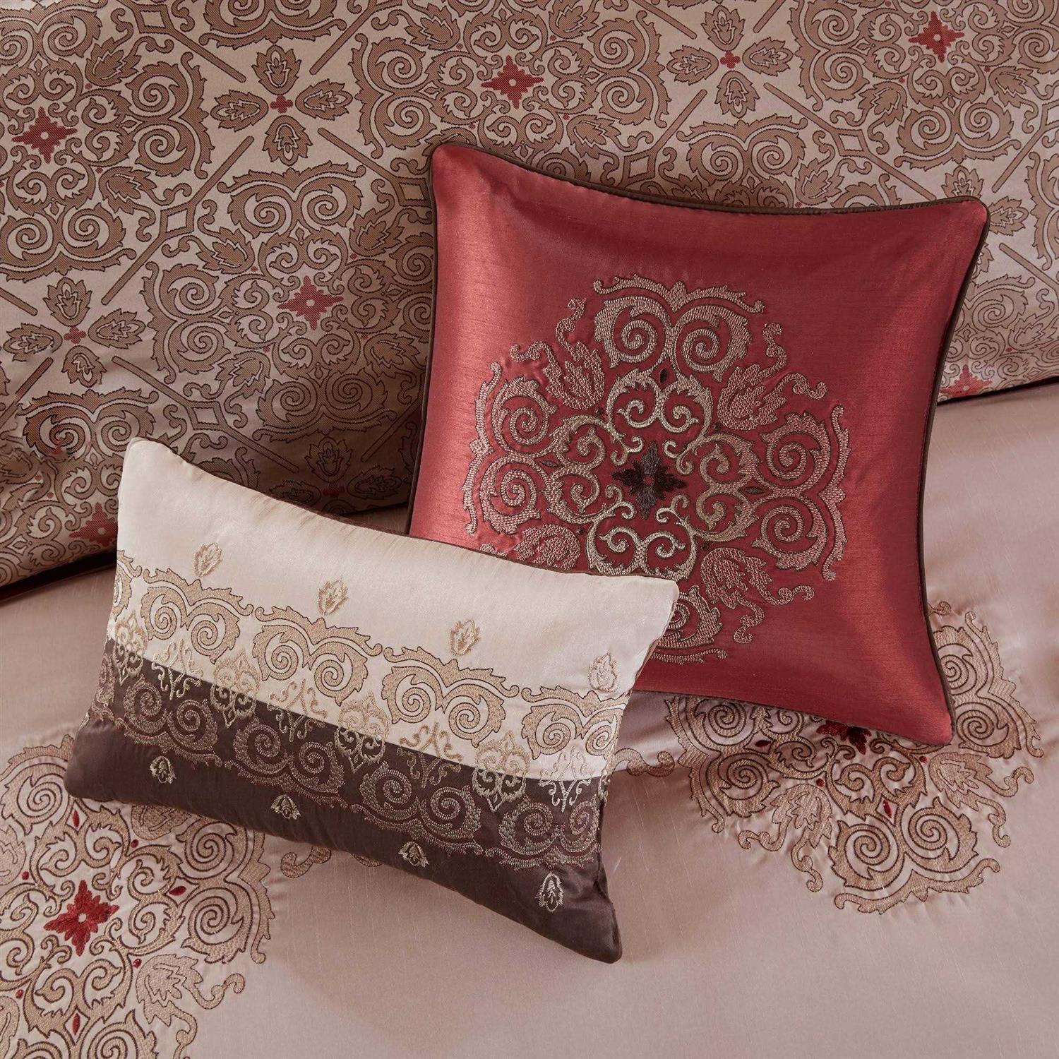• Glam luxury satin medallion jacquard pattern pieced in solid contrast and creates a serene bedroom bedding set