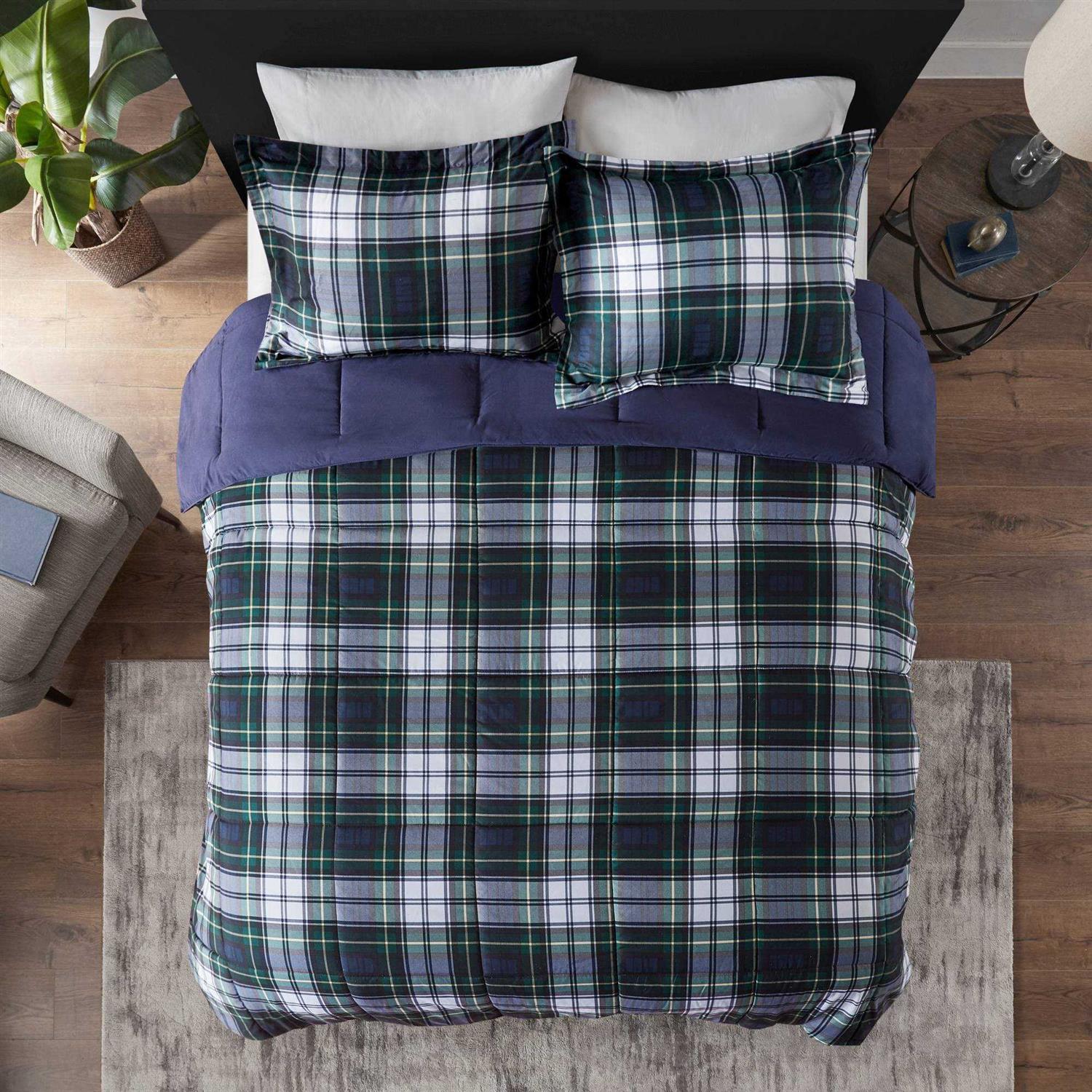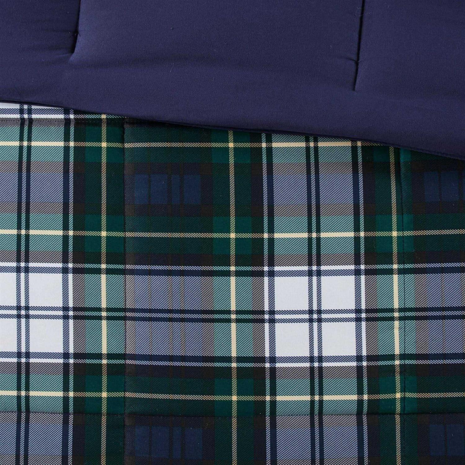 The Parkston Down Alternative Comforter Mini Set offers a perfectly classic and cozy update for your bedroom. This ultra-soft microfiber comforter features a dark green and navy blue plaid print with hints of yellow and white for a pop of color. Piping along the edge of the comforter and matching shams add dimension and charm to the bedding set. The down alternative filling provides extra warmth and comfort, while the sewn-through box-quilting prevents the filling from shifting. Machine washable for easy care, this comforter set is perfect for sprucing up your bedroom. Set includes: 1 Comforter and 2 Shams (or 1 Sham for Twin sizes).