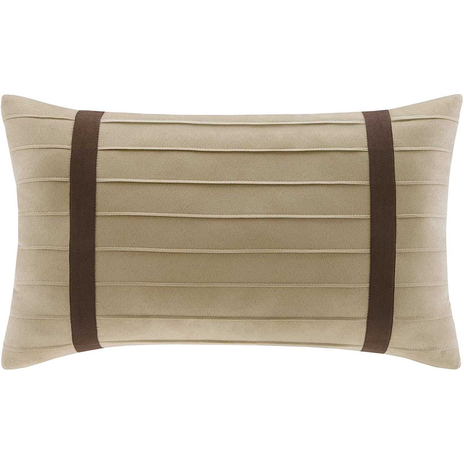- Includes nature-inspired leaves and solid neutral decorative pillows