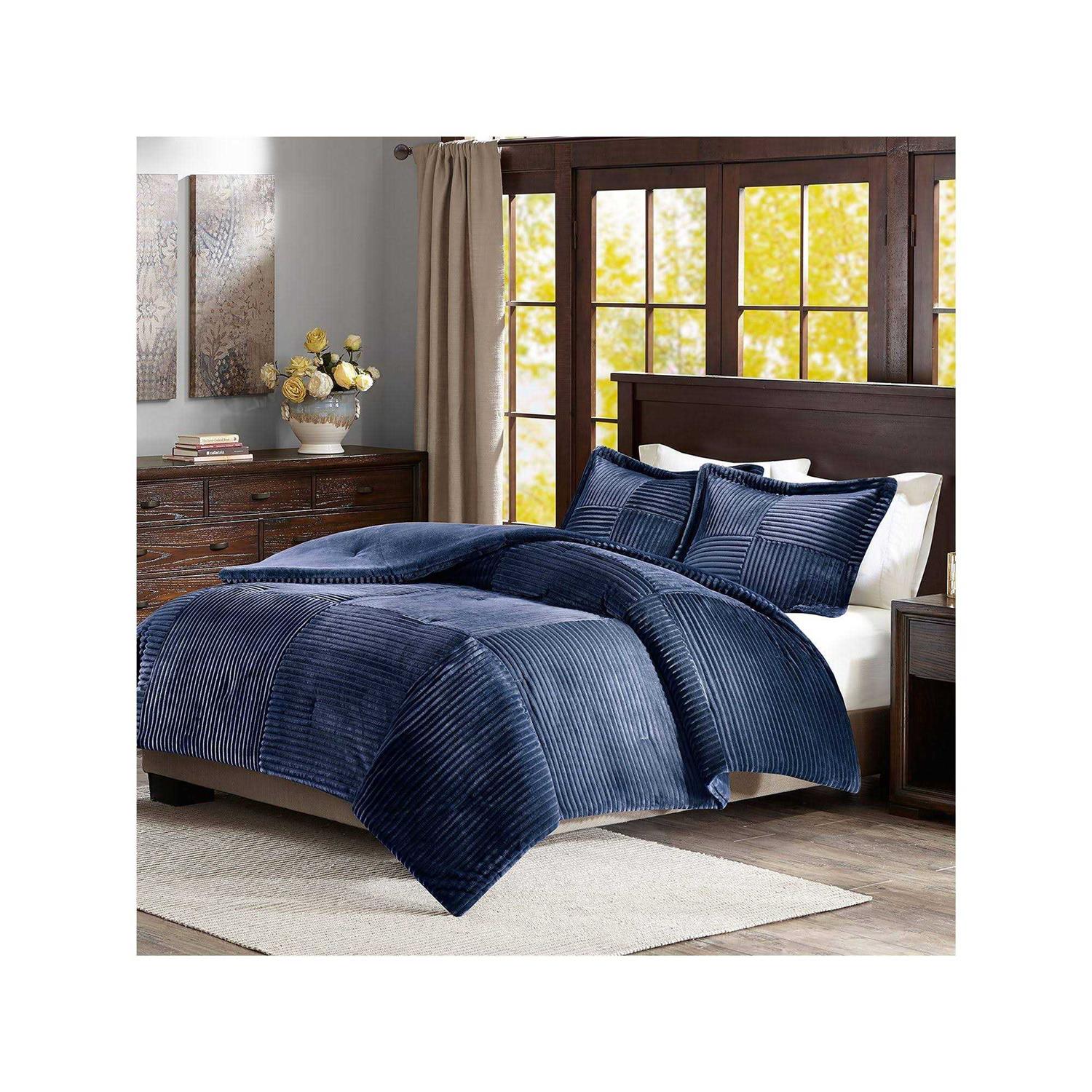Madison Park – Parker Corduroy Plush Comforter Mini Set – Navy – Twin