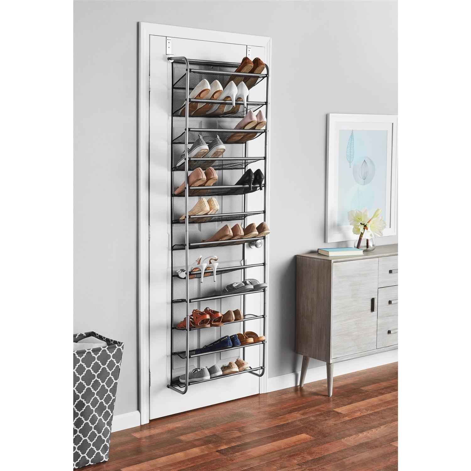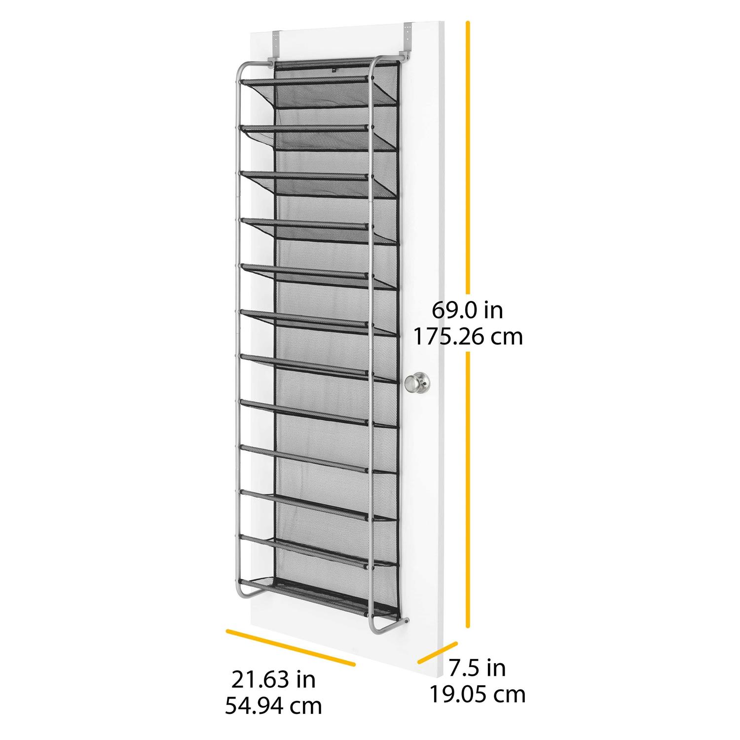 Holds up to 36 pairs of shoes, Mesh-lined back prevents shoes from falling out, Over-the-door hooks accommodate varying door sizes, Epoxy-coated silver frame. It saves time while also protecting your investment. The unique metal and mesh design combination will optimize the rack durability and functionality.