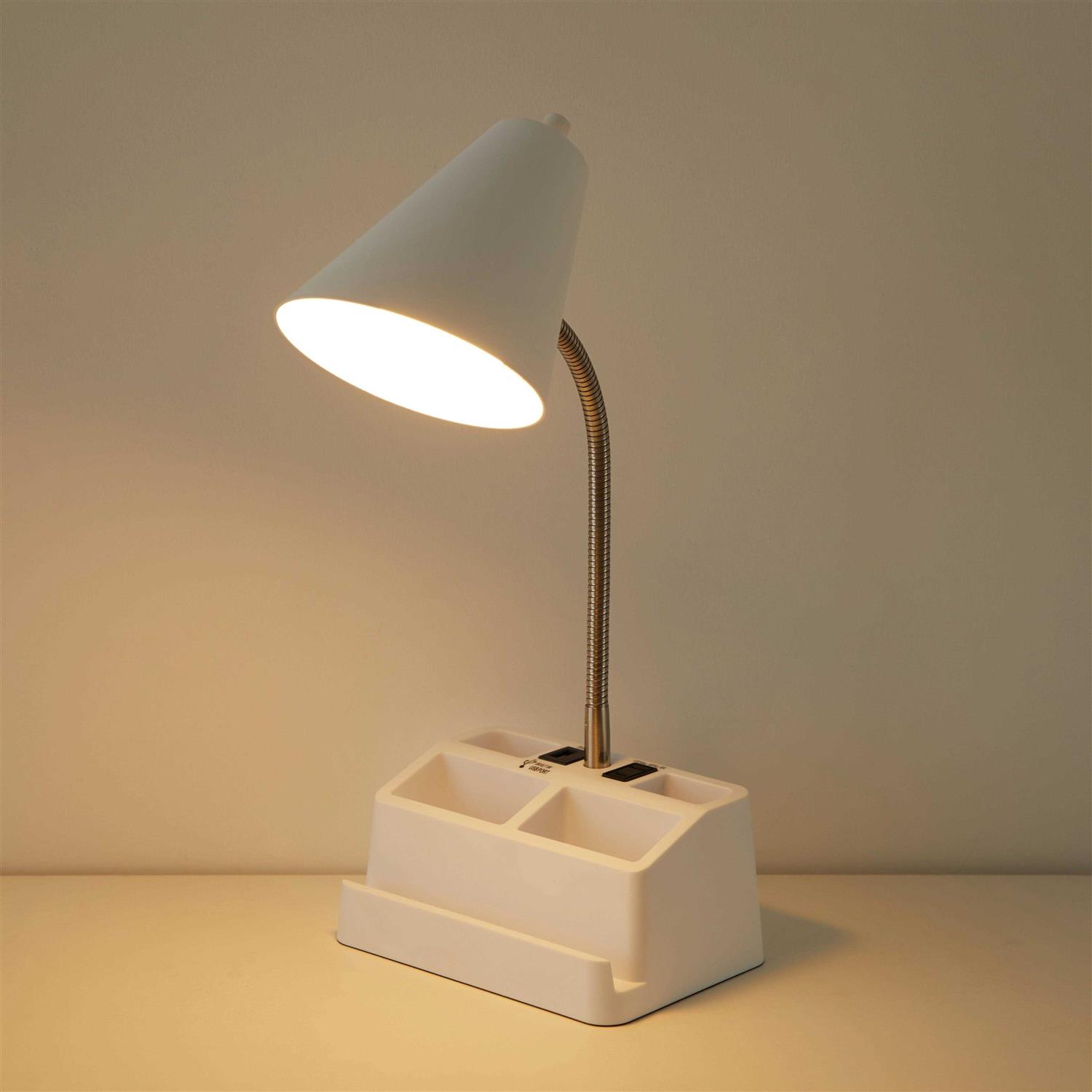 Mainstays 15″ Organizer White Task Lamp with USB Port and Outlet