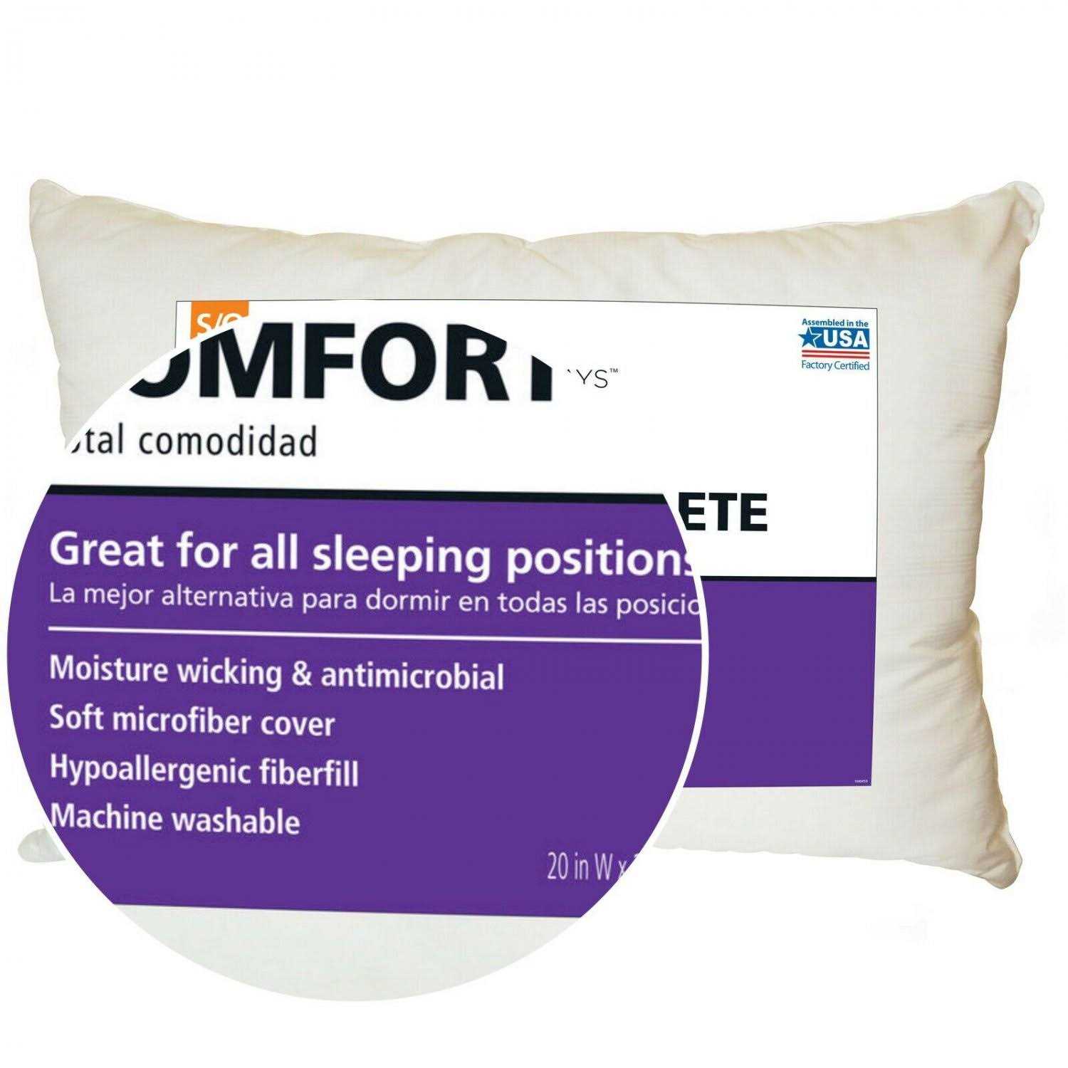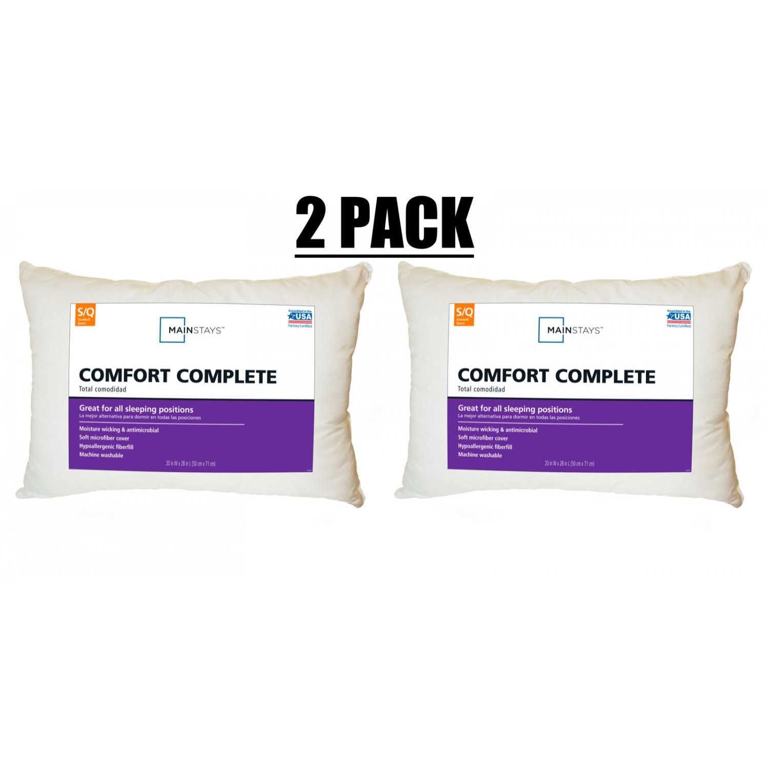 Drift to sleep in complete comfort with Mainstays Comfort Complete Pillow. This luxurious pillow features a super soft microfiber shell and a fill that mimics the comfort and loft of down at a fraction of the price! Mainstays Comfort Complete Pillow has antimicrobial properties and is hypoallergenic so you can rest and breathe easy. Moisture wicking technology helps to keep you cool all night long. With standard/queen dimensions of 20×28 inches, Mainstays Comfort Complete fits into your standard pillow cases or shams. Mainstays Comfort Complete Pillow is machine washable for easy care and convenience. Give your bedroom an extra layer of Comfort with Mainstays Comfort Complete Pillow.