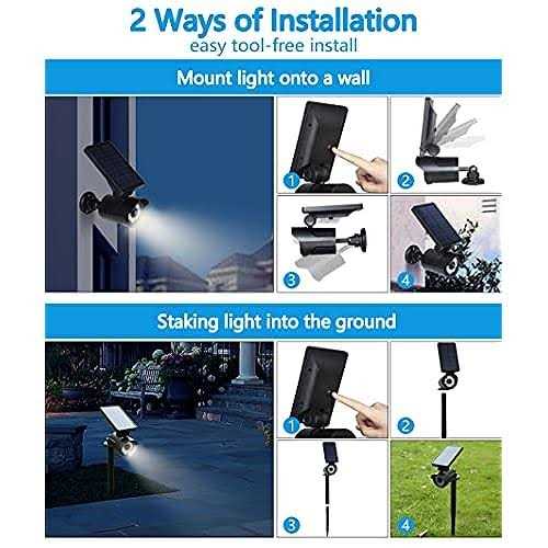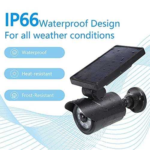 Anti-theft Design – The flashing red light lets intruders see the camera from a distance so they don’t even get up close to look at it. They are a good front line defense and possibly a deterrent to criminal activity. | 2 in 1 Portable and Easy to Install – It can be used as landscape light and wall light. – Solar Motion Sensor Light Outdoor Holder Can be Rotated 360, The Solar Panel has adjustable angles, so you can get full range of lighting. | Energy Saving – Solar lights outdoor motion sensor has built-in photocell sensor, it will turn off during the daytime and it will turn on automatically when the motion is detected at night. When there is no motion, the red LED is on as dummy camera. – Able to fool burglers. | Pro Motion Detection Sensor – The motion lights turn on automatically when detect a angle of 120 and distance of 26ft.and turn off automatically after 30s without the motion. – After people leave, the red indicator light keeps flashing, can scare thieves away. | IP65 Waterproof Use all day, ignore all kinds of bad weather, waterproof, heat resistant, cold resistant. – Perfect for garden yard lawn patio garage porch driveway landscape security. Make our life more convenient.