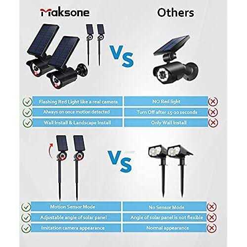 Maksone 2023 Motion Sensor Solar Security Lights Outdoor 2-in-1 Landscape Spotlights Wall Lights Dummy Camera with Flashing Red LED for Yard Garden