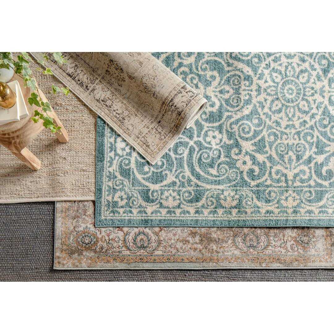 Maples India Medallion Area Rug and Runner Collection, Light Spa