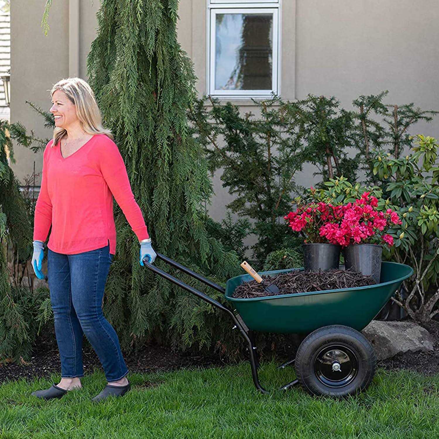 - Features two, air-filled wheels, making this yard cart easier to lift, balance and maneuver