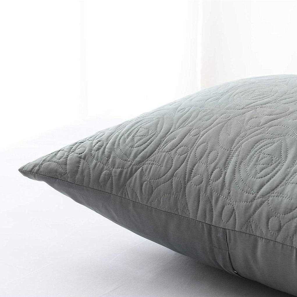 Deliver serenity to your space with these sham covers. The pristine stitching offers a touch of texture for easy elegance. Features: Includes 2 Euro sham covers 100-percent microfiber Inserts are not included Invisible zipper on bottom Machine wash cold separately Floral stitching pattern White or grey options 26 inches x 26 inches