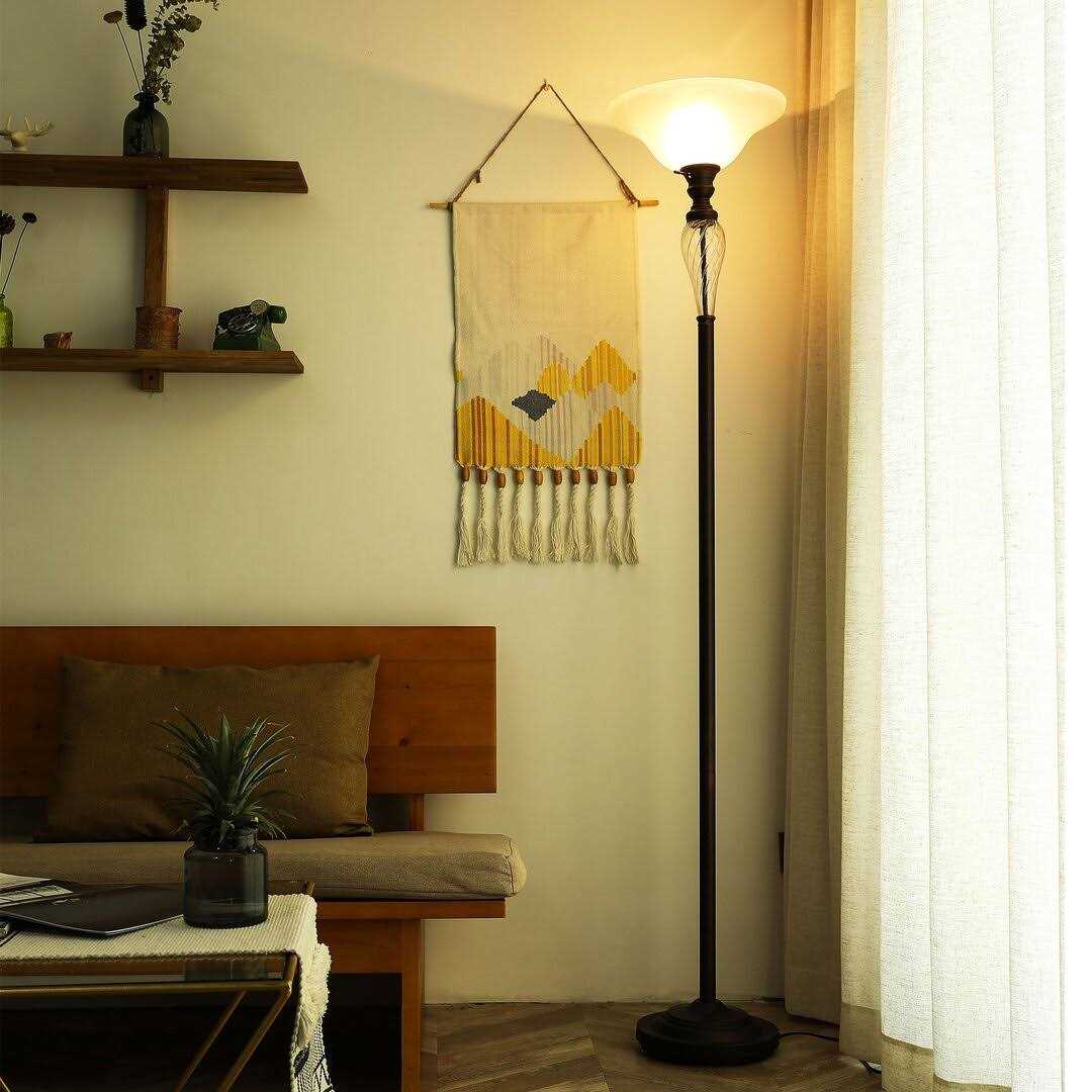 Darby Home Co Torchiere derived from the French word Torche, which translates into a torch in English. Inspired by this, their torchiere floor lamp shines bright like a torch, providing you with more than adequate illuminations while the Alabaster Swirl Glass Bowl lampshade softens the light to protect your eyesight. Fashioned in oil rubbed bronze finish, this classic metal fixture complements your family room, lounge, or office wonderfully.