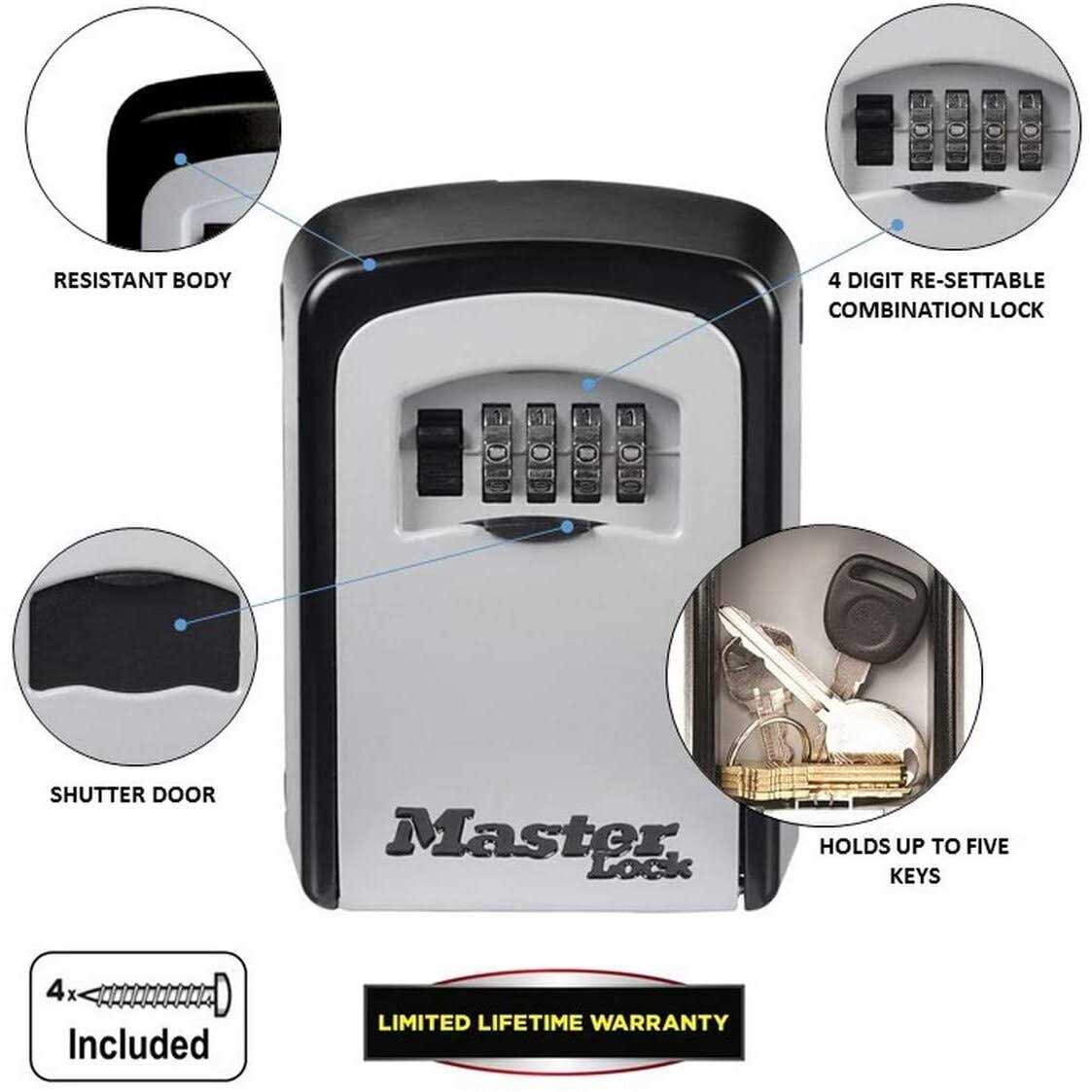 Key Safe Medium size Wall mounted Outdoor Exist in 5401EURD Key Lock Boxnn–Lock box application: for indoor and outdoor use wall mount key safe is best used for Key and access card storage Large internal cavity allows secure storage for multiple keysnn–Ease of use: resettable 4 digit combination for keyless convenience, set and reset your combination allowing thousands of personalized combination code options. Simple installation mounting kit includednn–Durable design: lockable key storage designed for installation to a wall or other fixed object metal body construction for durability and shutter door to protect combination dials from weathernn–Ideal for set of keys: exterior dimensions H x W x D 11.9cm x 8.5cm x 3.6cm Interior dimensions H x W x D 9.2cm x 6.4cm x 3cmnn–Easy to secure and Share your keys: great solution for Airbnb and home rental. Gives easy access to care takers and home workers. Ideal to share keys with your family or roomates.nn–Limited.