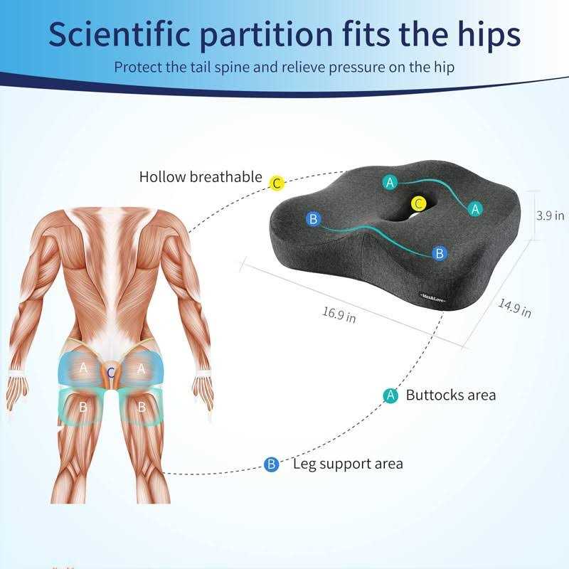 Max&Love Memory Foam Seat Chair Cushion for Relieves Back Sciatica Pain Tailbone Pain Coccyx Degenerating Disc Orthopedic Osteoarthritis Prostate