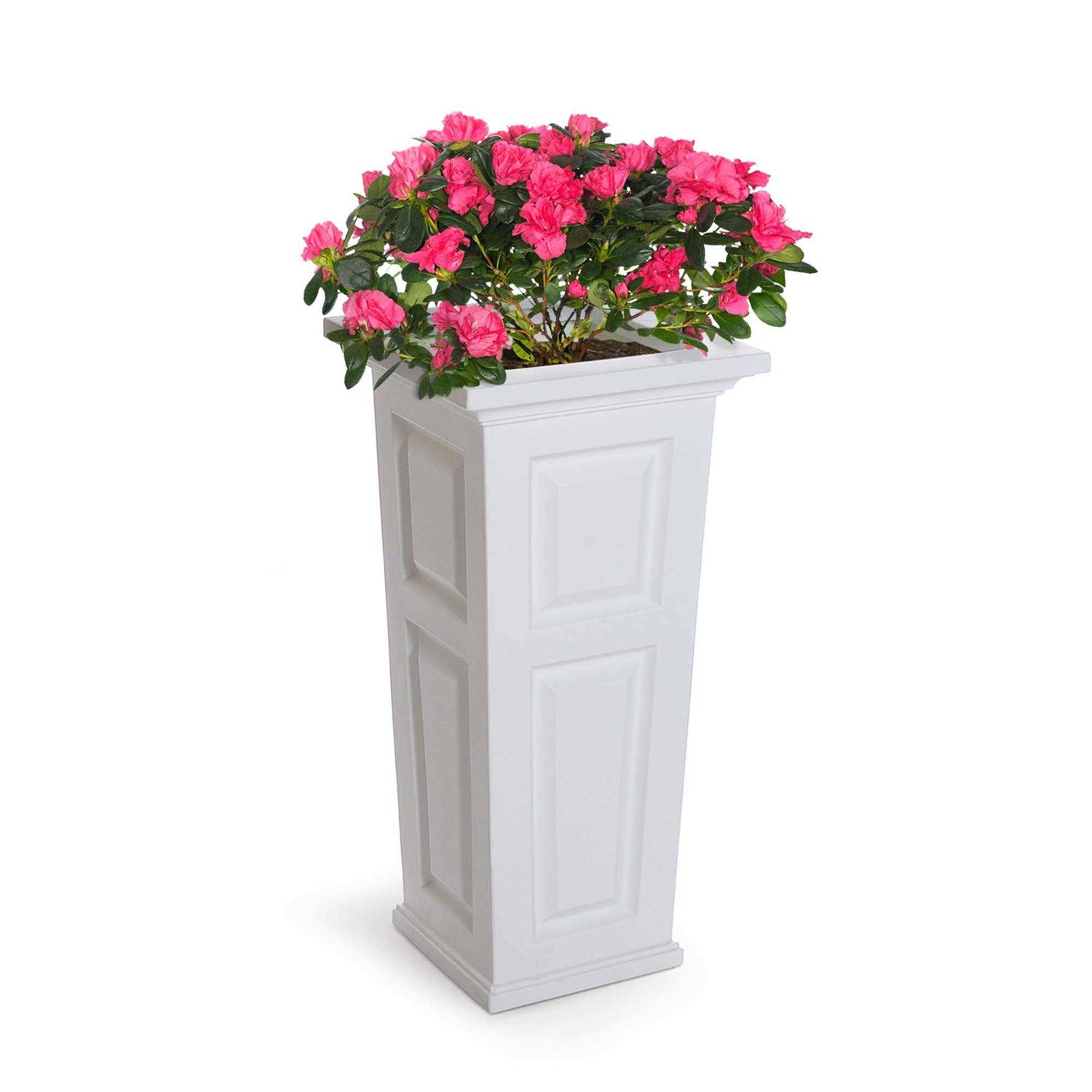 Style and functionality come together perfectly with the Nantucket Tall Planter by Mayne, creating an elegant finishing touch to any patio or entrance way. Single wall molded design, with self watering tray insert that creates sub-irrigation water system and encourages root growth. The tray can be reversed to support a potted plant or removed so the planter can be completely filled with soil. Drainage holes to be pre-drilled by customer depending on desired use of the planter. Approximately 10 gallon soil capacity, water capacity is approximately 6.5 gallons (24 liters). The weather-proof and ultra-tough construction allows you to enjoy your planter all year long with very little winter preparation. The UV inhibitors within the resin allows for a long lasting fade-free performance.