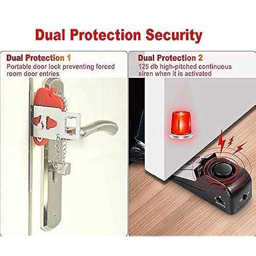 Dual Protection 1:This portable door lock provides you with extra security and privacy, greatly improving your security and preventing unauthorized entry, so the door can’t be opened from the outside, not even with a key; which is a great helper for you when you are on business and trips, or live alone Dual Protection 2: the door stopper alarm with 120DB siren, Once someone opens the door, the door stopper alarm will go off in the first place, they will scaring away bad guys and helps wake you and give you time to find help.Require one 9v battery (Not include) EASY TO USE: Easy to install or remove, Our Security Door lock Kit can be installed in seconds without any tools, Perfect for hotels, dormitories, apartments, short-term rentals, Airbnbs, bathrooms, bedrooms, or private rooms. Package Include:1x Door Stop Alarm,1xPortable Door Lock,1x Instructions,1x Storage bag,1xGift Package p The door stopper alarm need battery-operated that it’s requires 1 X 9V battery (package not included) /b – Package: /b 1X Door Stopper Alarm (without battery), 1 X portable door lock. /b br – Are you worried about the insecurity in a hotel and fear of strangers opening your room? – So, imagine, you’re alone at home or in a hotel or airbnb room or rentals, – sometimes the door lock does not work efficiently. Don’t worry, if you have Our Security Door Kit, – it will prevent unauthorized entry, provide absolute security and privacy of your room and peace of mind in those situations. – Notes: /b – 1. Place it under the door, the gap between the bottom of the door and the floor should be 10MM(0.38 in) to 30MM(1.35 in). – 2. Smooth floor can try to use H-type sensitivity, vibration-sensing alarm. – 3. When the alarm sound gradually becomes smaller, it means to replace the new battery. – 4. Turn off the power supply can be used as a doorstop. – 5. – 6.portable add lock can only be used for in-swinging hinged door /p
