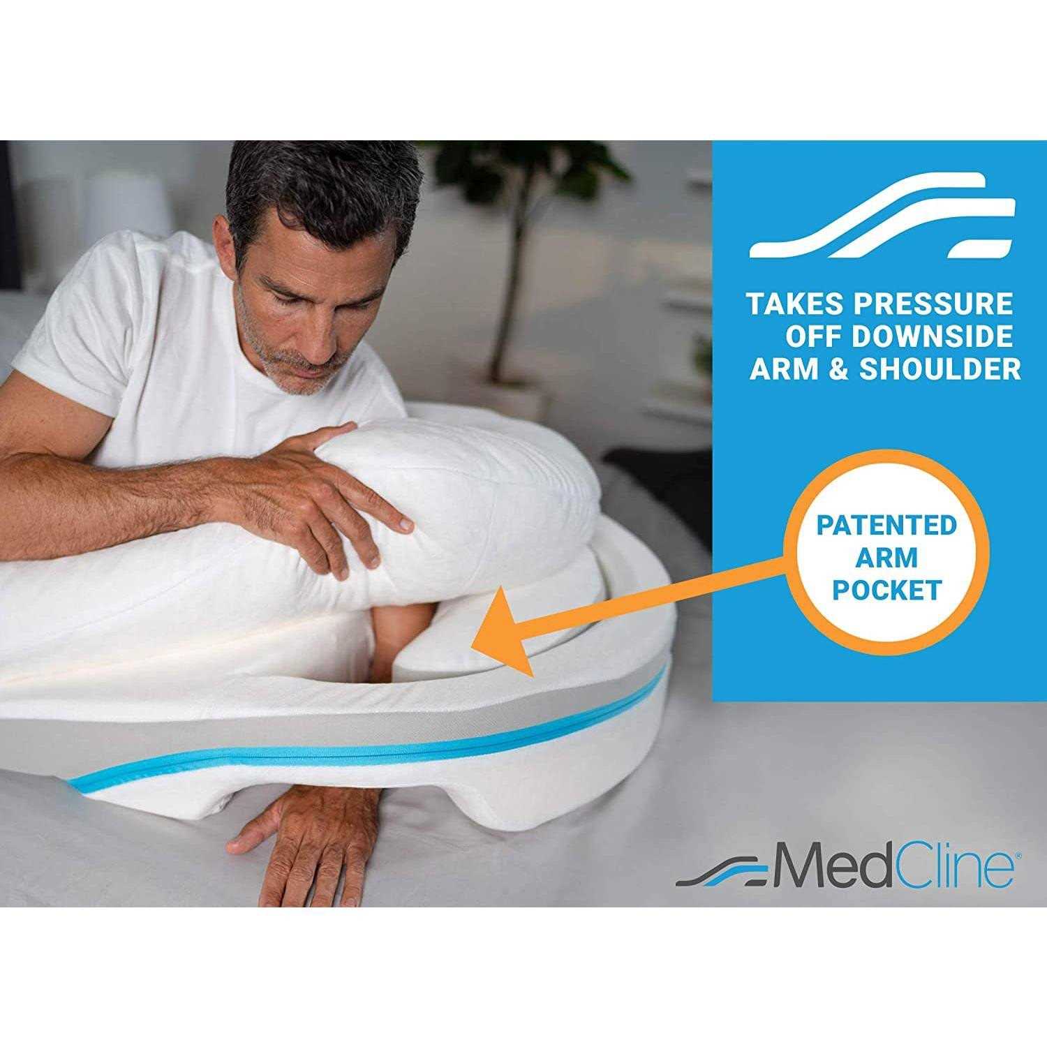 MedCline Shoulder Relief Bed Wedge and Body Pillow System is designed for the ultimate in side-sleeping comfort. Its patented arm pocket allows you to sleep on your side without putting pressure on your downside shoulder and arm. For those feeling the lingering effects of an old sports injury to those suffering with arthritis in the shoulder, MedCline allows you to once again sleep comfortably on your side. Color: One Color.