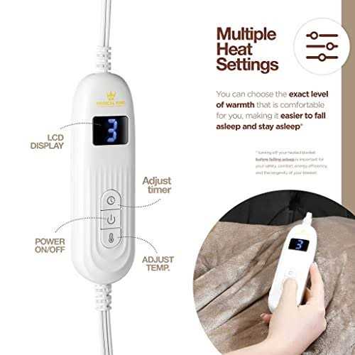 Medical King Heated Blanket Machine Washable Extremely Soft and Comfortable Electric Blanket Throw Fast Heating with Hand Controller 10 Heating Settin