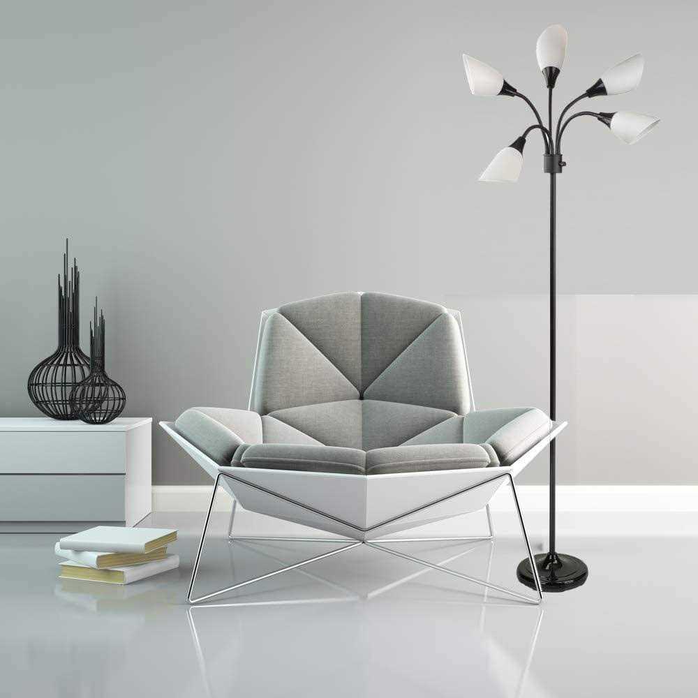 Medusa Multi Head Floor Lamp with 5 Adjustable White Acrylic Reading Shades (Black)