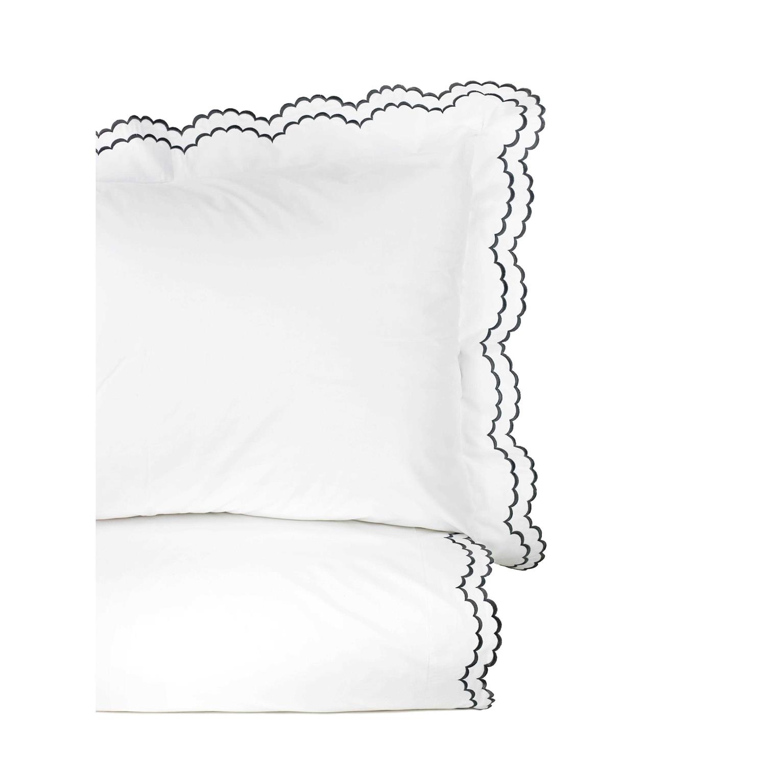 Melange Home Percale Cotton Double Scalloped Embroidered Set