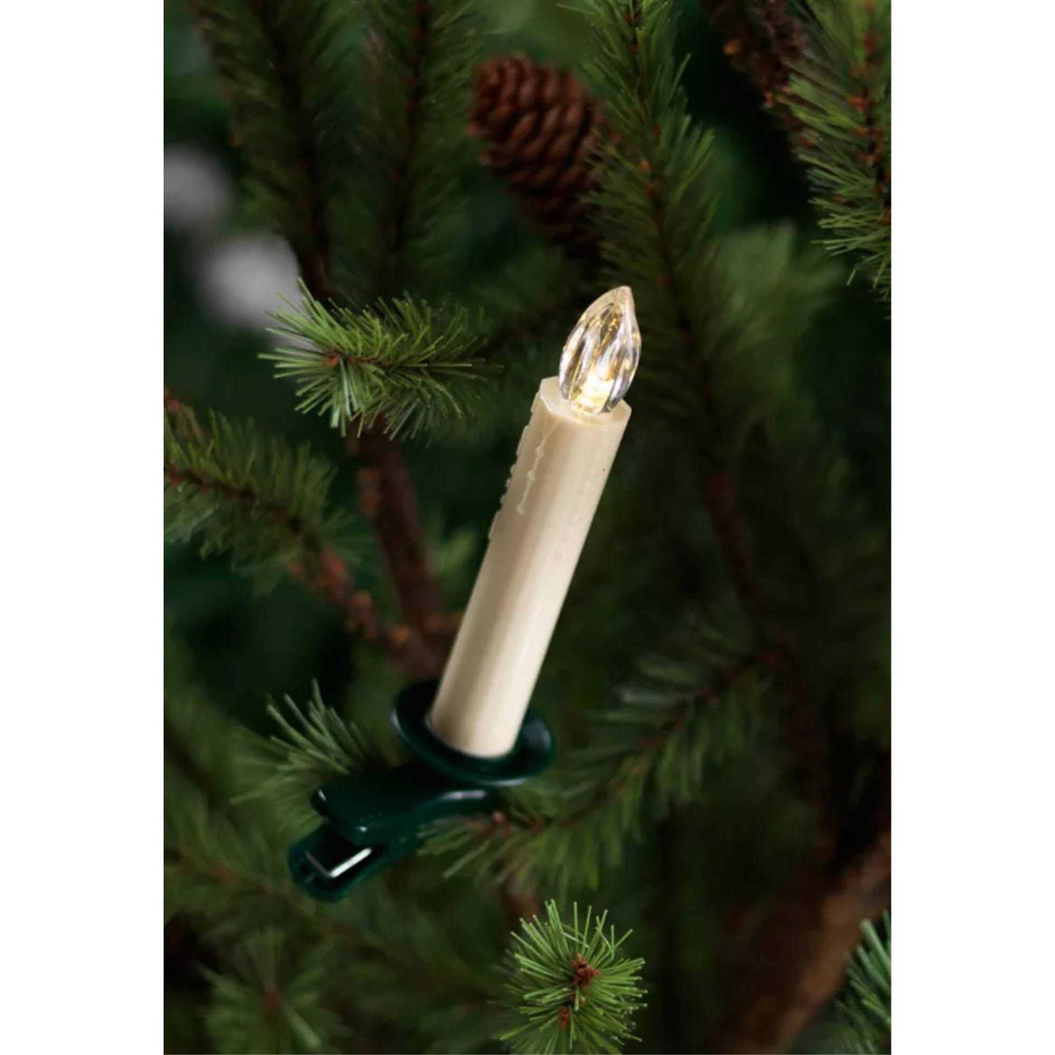 These beautiful clip on faux drip wax LED safe flame less candles will add a vintage and classical look to your Christmas and holiday decorations. They are perfect for your tree or garland displays. The green clip blends well into your holiday greenery. They are perfect for use in trees wreaths displays garlands and more. A simple remote turns the candles on or off. Each candle uses 1 AA size battery and the remote uses 2 AAA batteries.