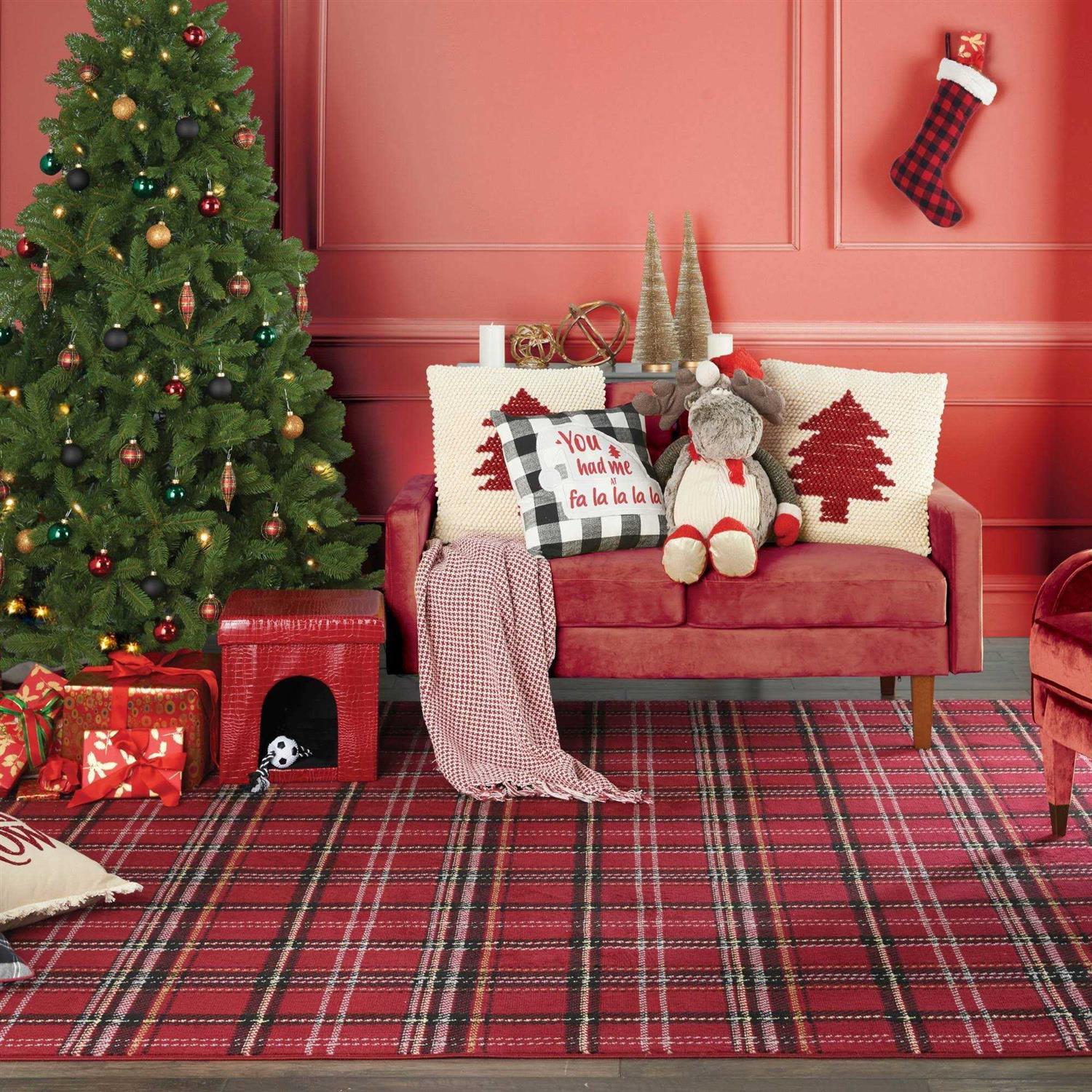 Mina Victory Home for The Holiday Christmas Tree Loops Ivory Red Throw Pillow