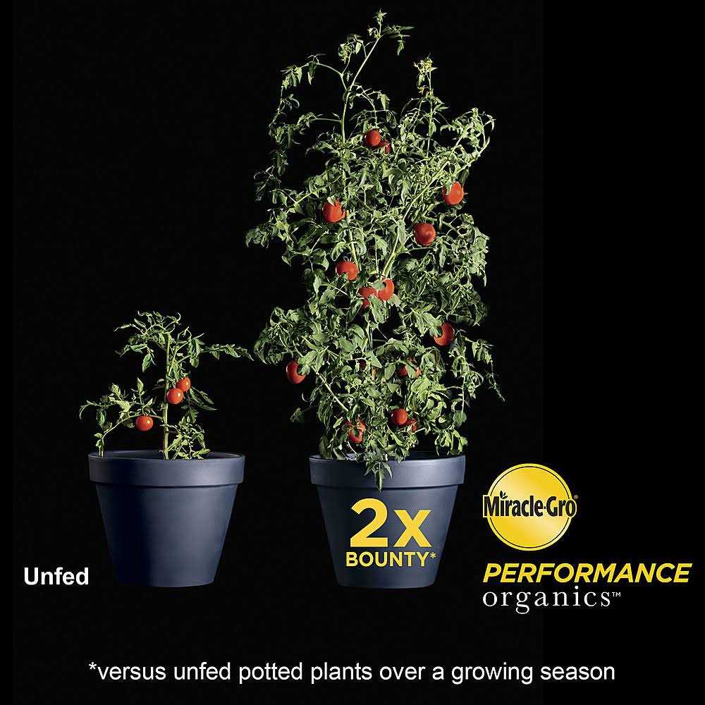 Astonishing results, every time that has always been the Miracle-Gro mission. Miracle-Gro Performance Organics All Purpose Container Mix delivers the Miracle-Gro results you expect with the ingredients you want. What does that mean for you More bounty vegetables, flowers, and herbs organically. Season long plant nutrition and aged compost deliver up to 2x more bounty, guaranteed (vs. unfed plants).