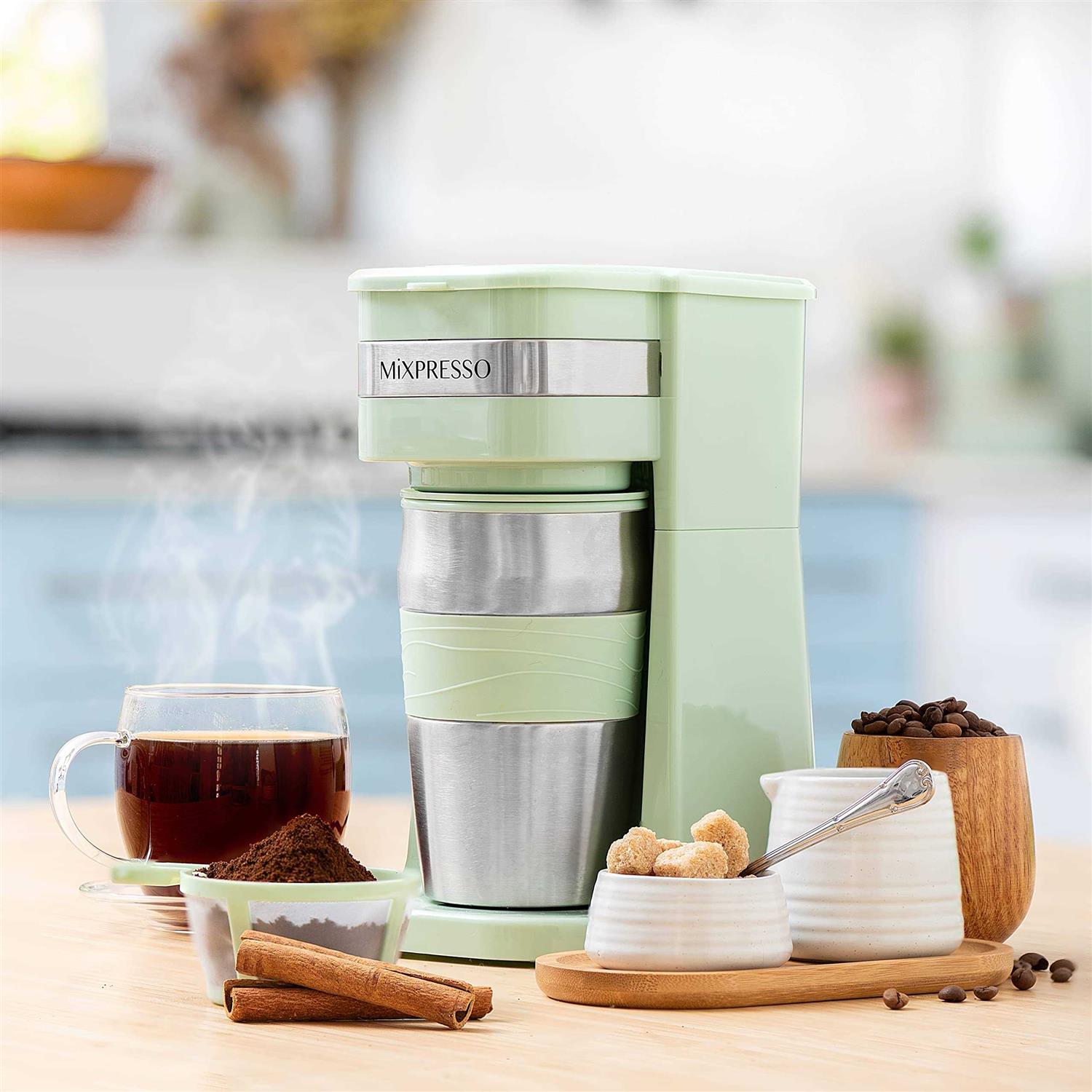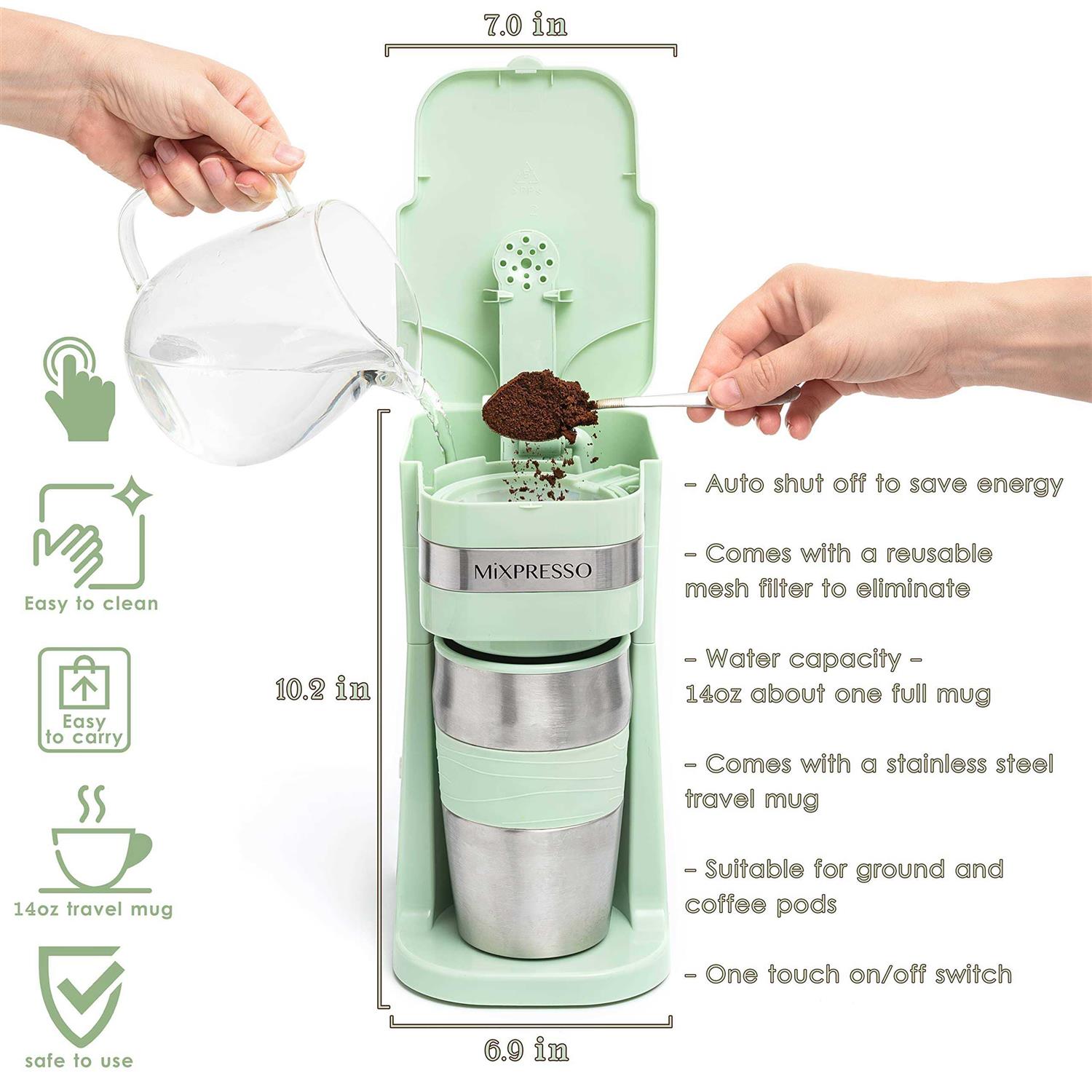 Mixpresso Ultimate 2-in-1 Single Cup Coffee Maker & 14oz Travel Mug, Portable & Lightweight Personal Drip Coffee Brewer & Tumbler Advanced Auto Shut