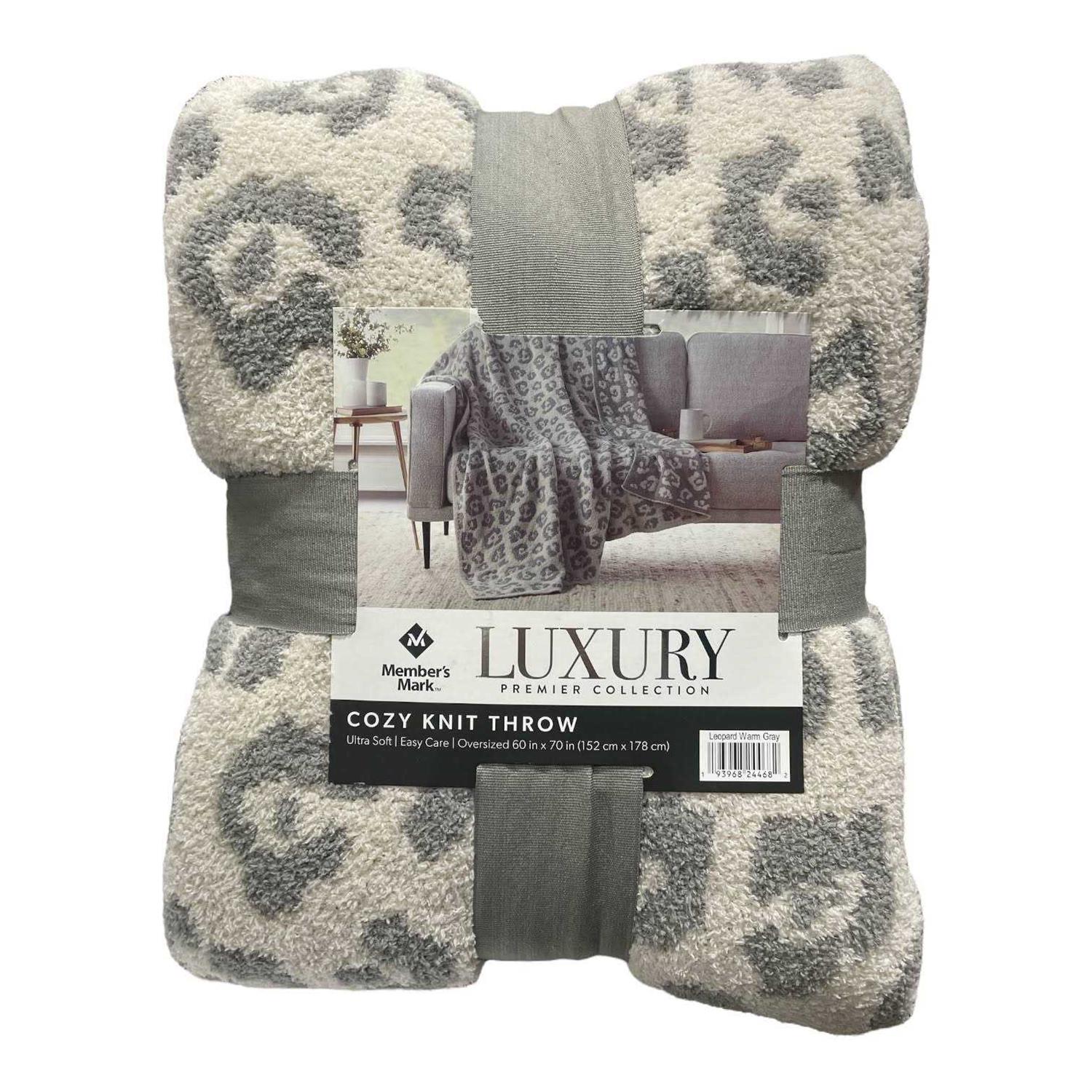 Member’s Mark Luxury Premier Collection Cozy Knit Animal Print Throw (Leopard Warm Grey, 60″ x 70″)