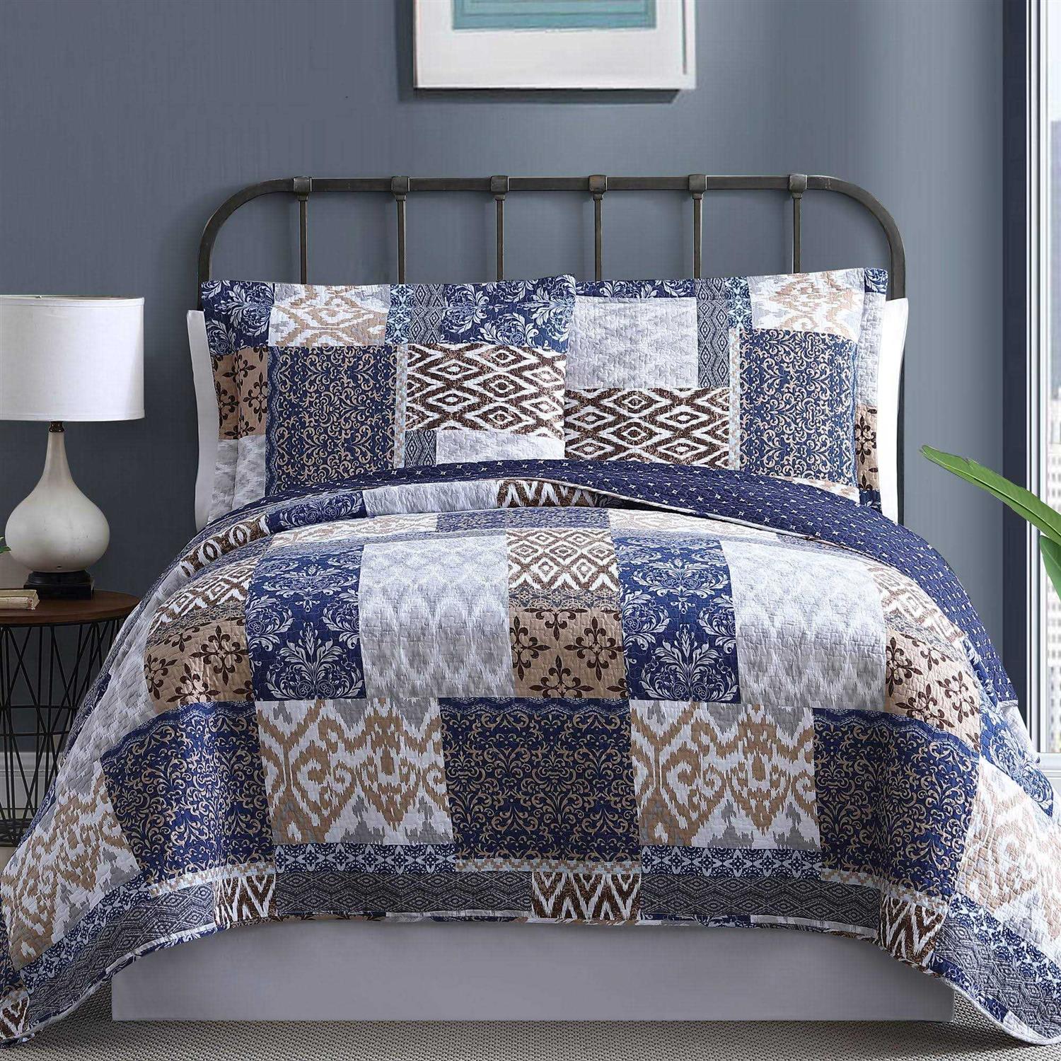 Modern Threads 100% Cotton 3-Piece Printed Reversible Quilt Set Laura