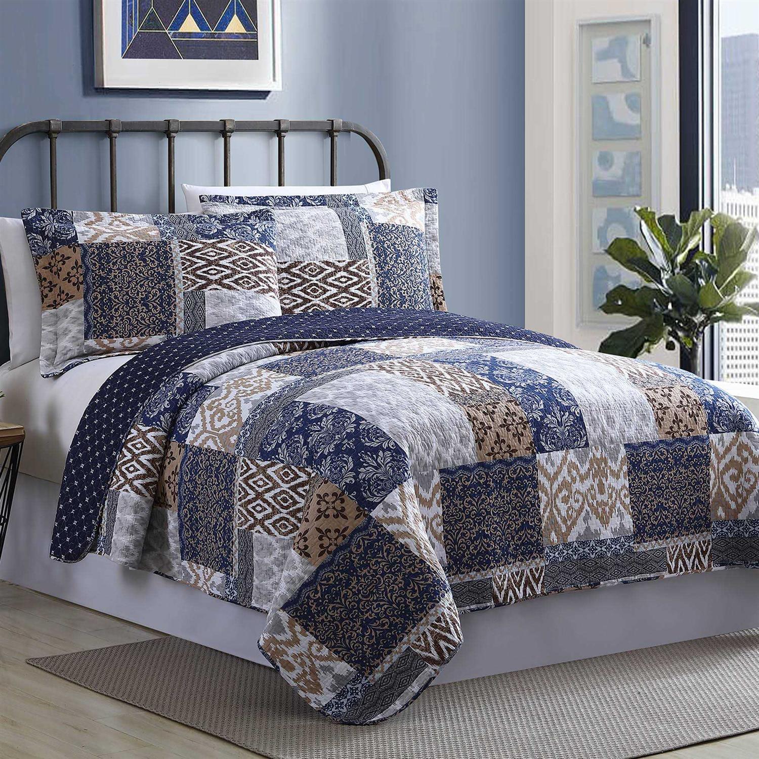 Cotton 3 Piece Printed Reversible Quilt Set – Laura Full/Queen