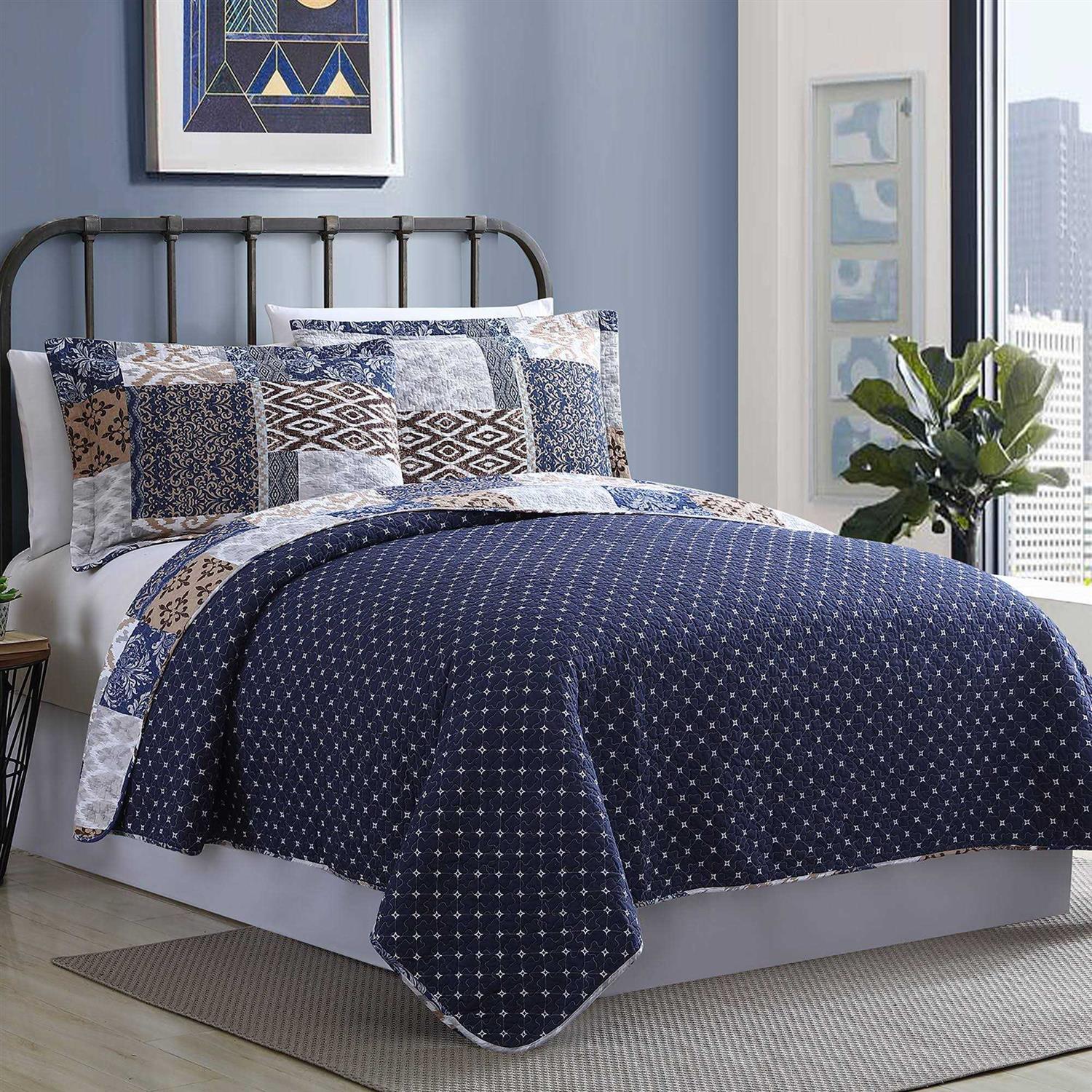 Modern Threads 100% Cotton 3-Piece Printed Reversible Quilt Set Laura