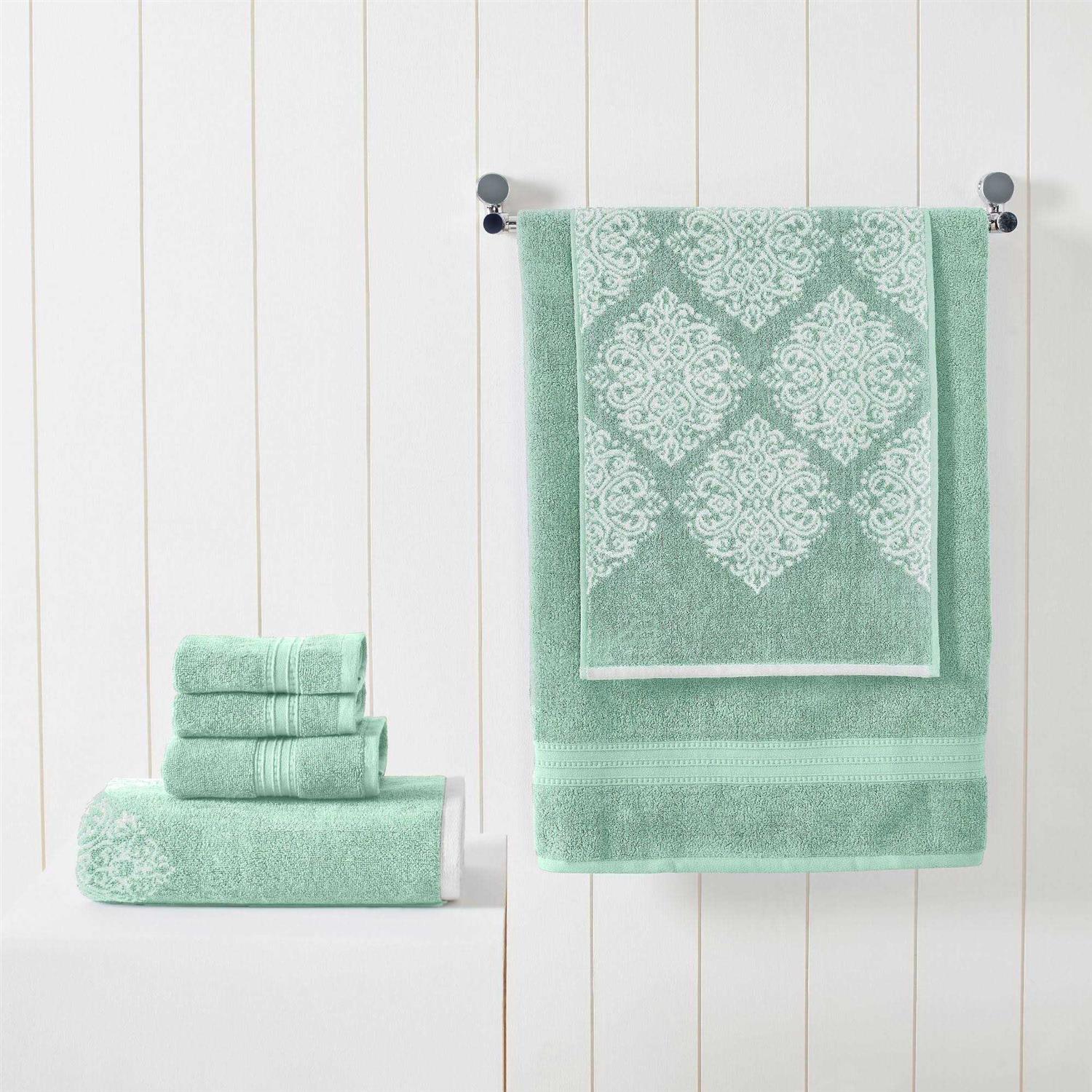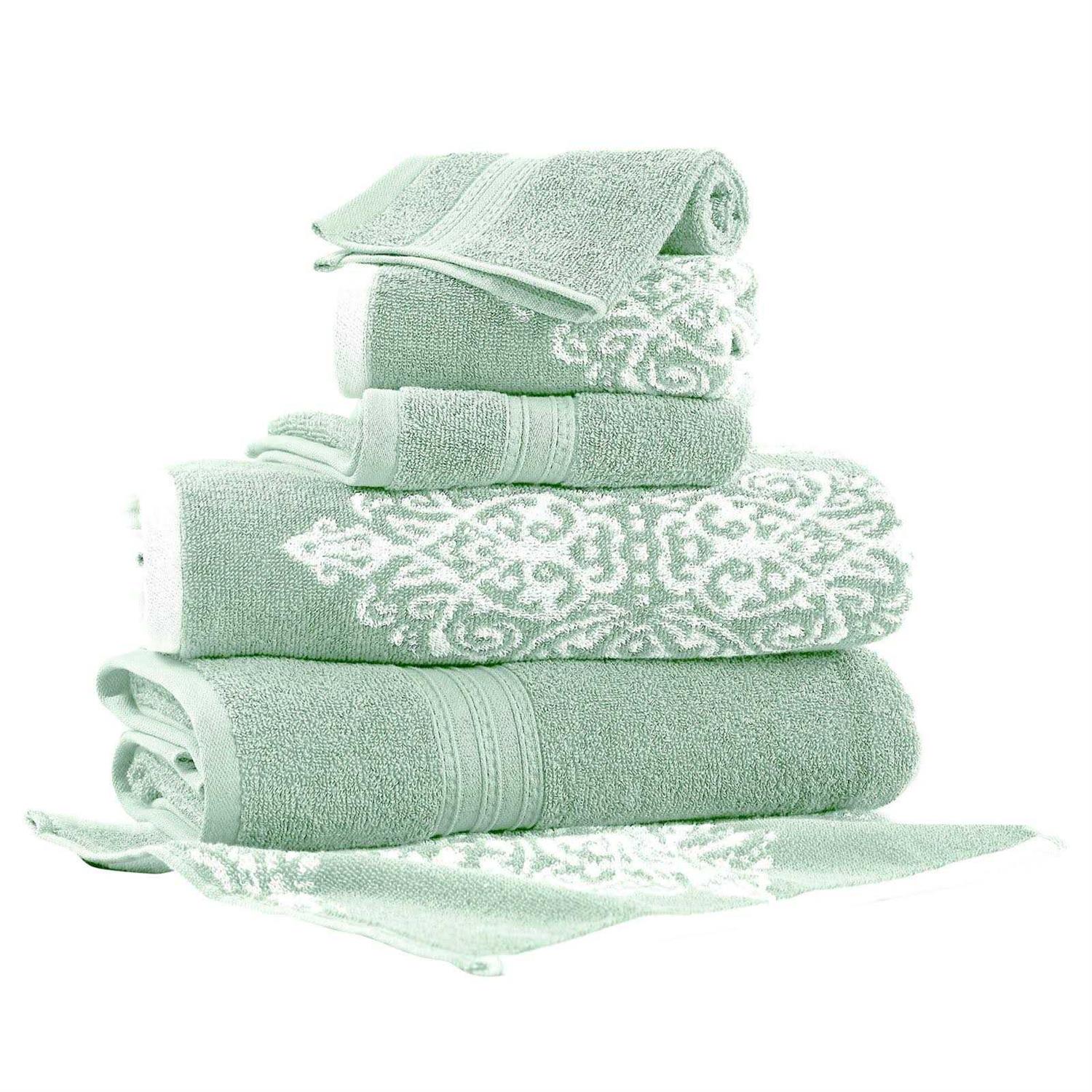 6 Piece Reversible Yarn Dyed Jacquard Towel Set Artesia Damask Sage