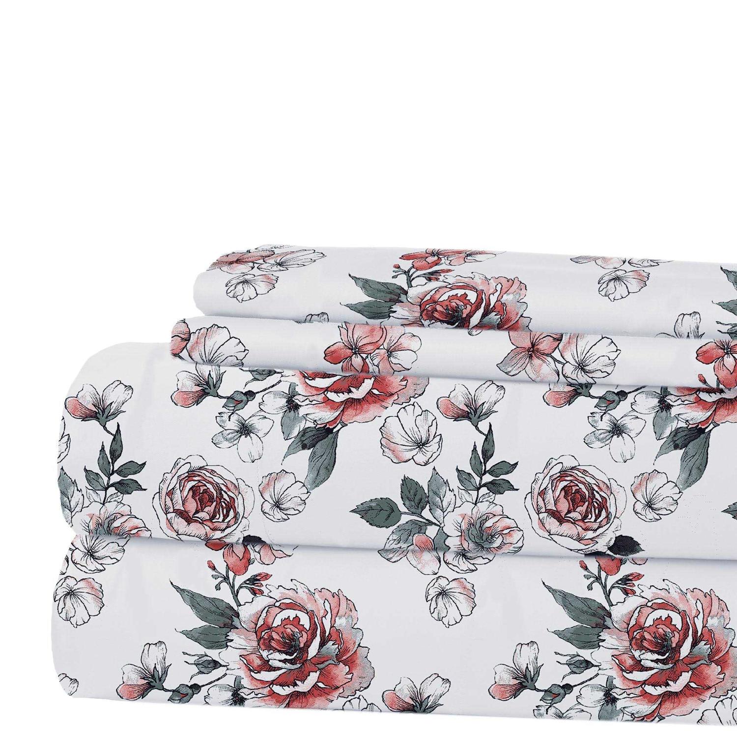 Modern Threads Printed 4 Piece Sheet Set, Kashmir Rose, Queen