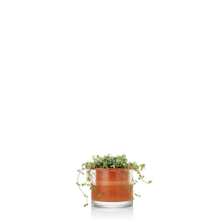 Channel your inner green thumb with these ingenious Swedish wet pots that won’t let you over- or under-water. Each set consists of a terracotta planter inside a reservoir of hand-blown glass. Just fill the reservoir with water to ensure plants will absorb only what they need through the terracotta pot walls. The upper section of the pot is glazed to make handling easier. Safe for indoor and outdoor use while the temperature stays above frost point, these self-watering pots are attractive additions to your patio, windowsill or table. The extra small size fits one or two mini cacti; the medium is large enough to fit a potted azalea or fern. Suitable for most houseplants but not recommended for succulents or orchids. Dishwasher-safe. To clean by hand, use soapy water with some vinegar to remove limestone residue on both the terracotta and glass.