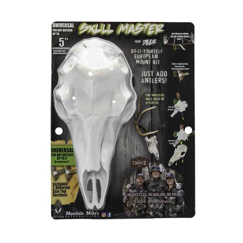 Compatible with your own harvested Fallow, Whitetail or Mule deer antlers or shed antlers the Skull Master kit includes all hardware needed to attach a set of antlers to a great looking European deer skull Universal Kit comes with both Medium and Large pedical top skull sections to be able to mount any diameter antler (measured above the burr). You’ll really appreciate the ease of use of Mountain Mike’s display kits. Say goodbye to boiling, bleaching and (ugh!) bugs for good. Replaces the skull plate allowing you to mount sheds or harvested antlers without bringing the whole animal home.