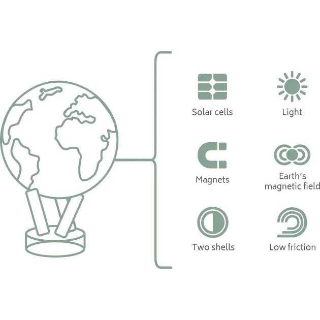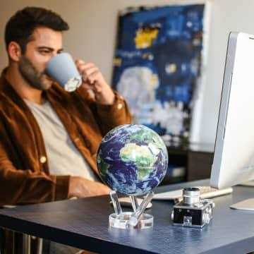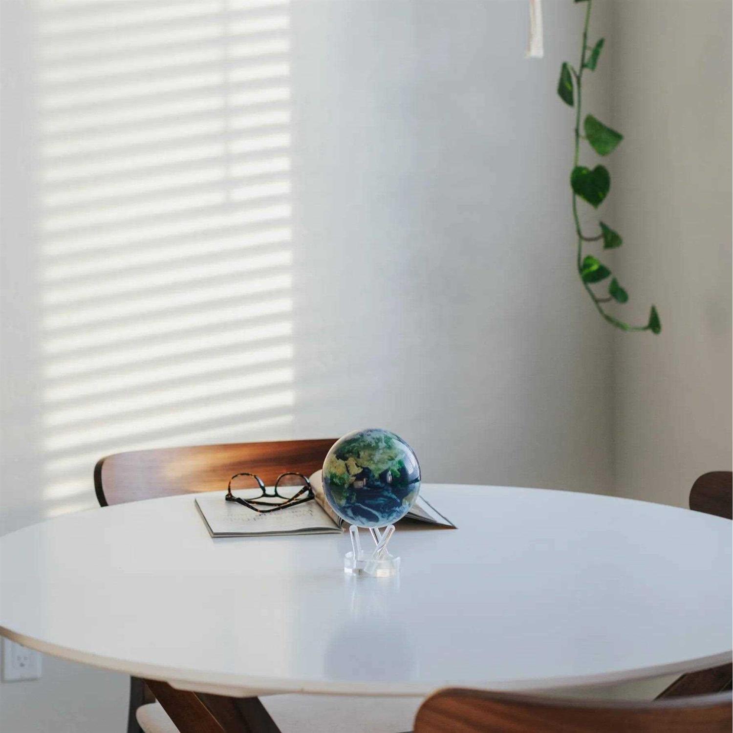 This is a magical sight that few get the privilege of seeing in person—Earth, viewed from space. The mesmerizing MOVA Globe features images captured by NASA for an authentic recreation of our beautiful planet as seen from afar. Swirls of white clouds punctuate soothing hues of green and blue. The gentle rotation of the sphere seems inexplicable! But ingenious engineering makes the motion possible. Hidden magnets inside are powered by the sun. No cords or batteries are required. A truly modern wonder with universal appeal for all curious Earth dwellers. Measures 6 inches in diameter. Acrylic display stand included.