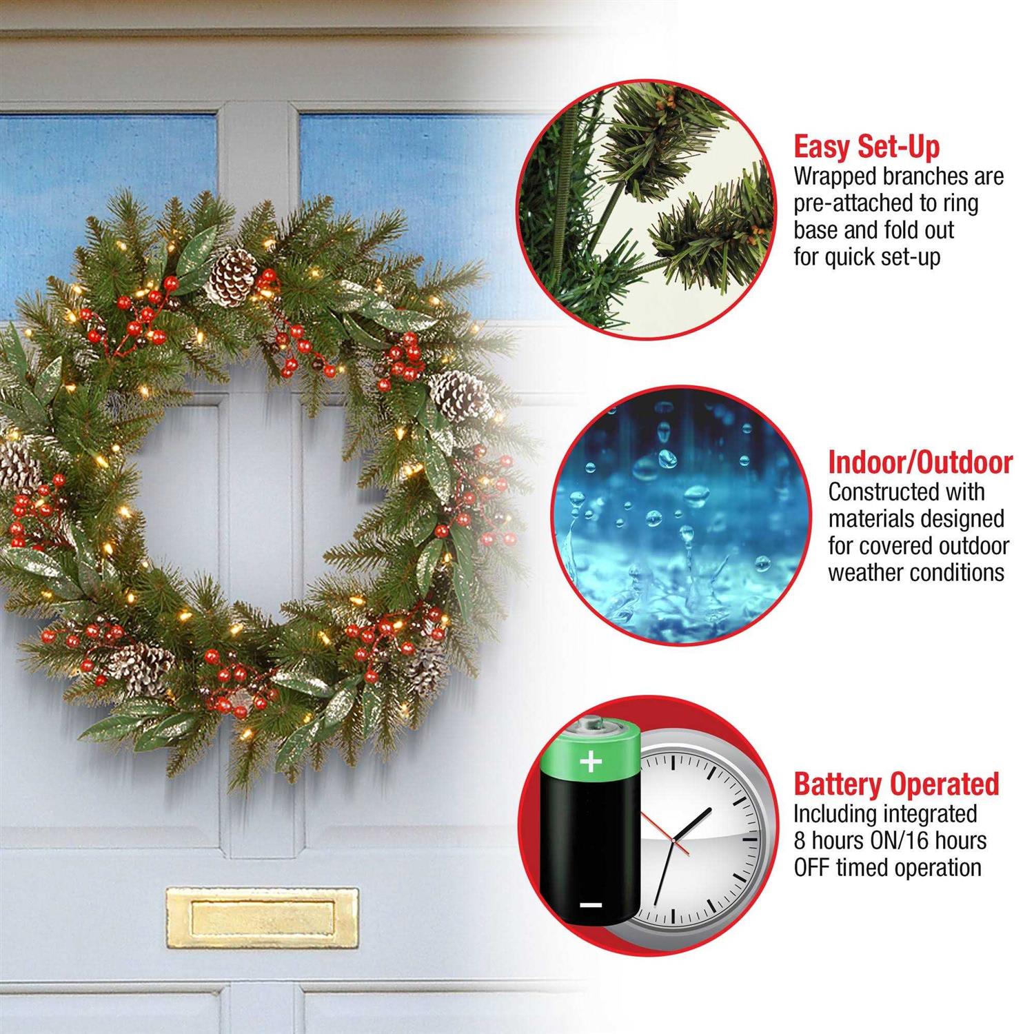 National Tree Frosted Pine Berry Wreath with Lights 24
