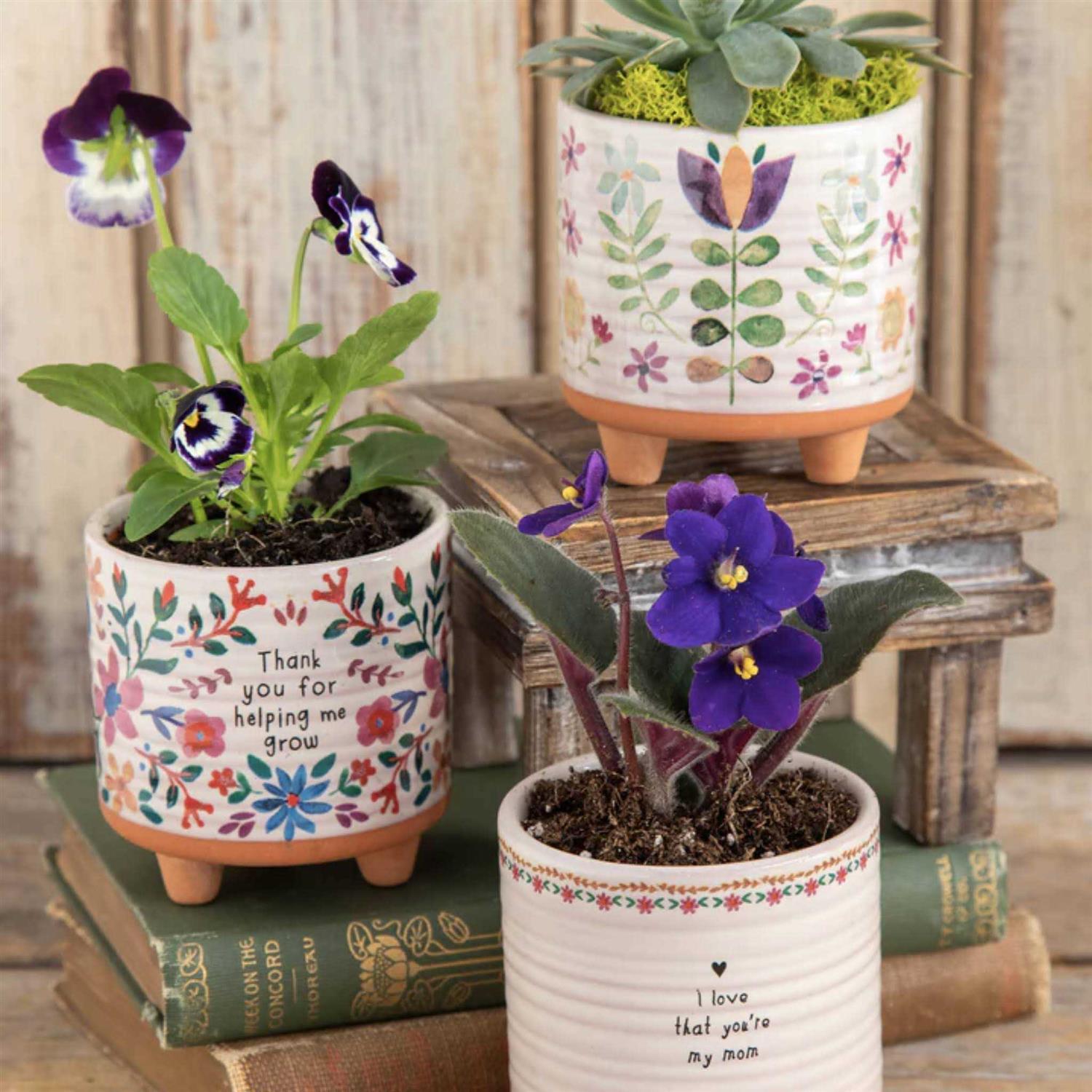Fill it with your favorite little plant or flowers to bring warmth and life into any space or use it as a fun container for tiny things! It the perfect little gift for someone you love! Let them know they make the world a better place. Reads: You make the world better just by being in it Hand sculpted planter suggested for indoor use. Terra cotta. No drainage hole. Plants not included. Will fit most 2″ plants. 3″ x 2.5″ in diameter. Imported. Smaller planter and other You Make The World A Better Place gifts also available.