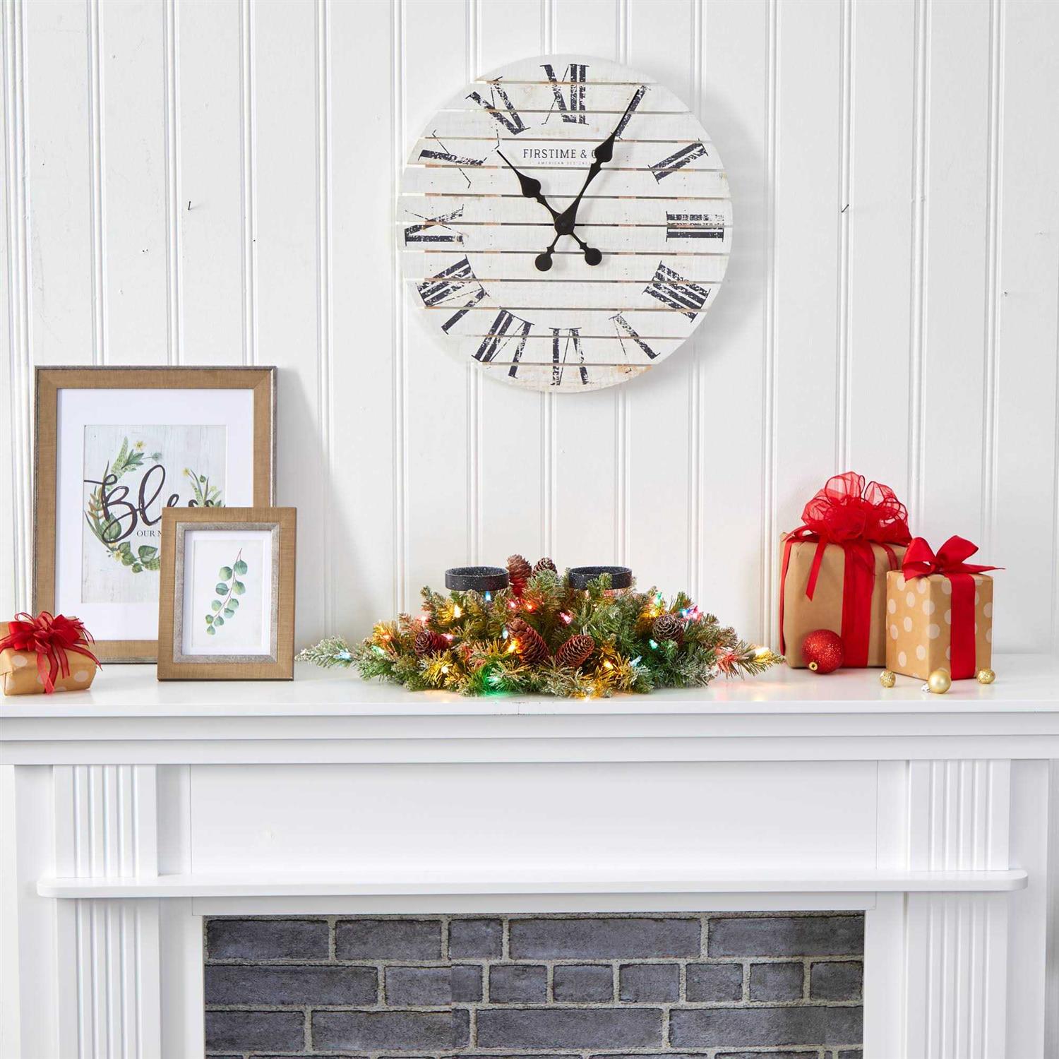 Nearly Natural 24″ Flocked Artificial Christmas Wreath with 50 LED Lights