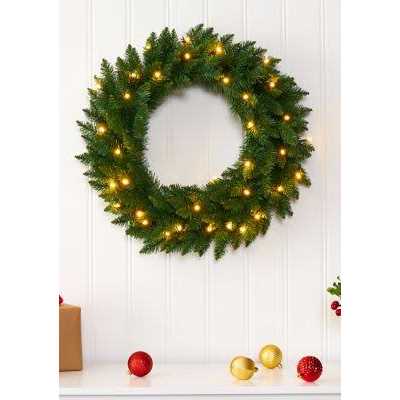 Nearly Natural 24in. Green Pine Artificial Christmas Wreath with 35 Clear LED Lights