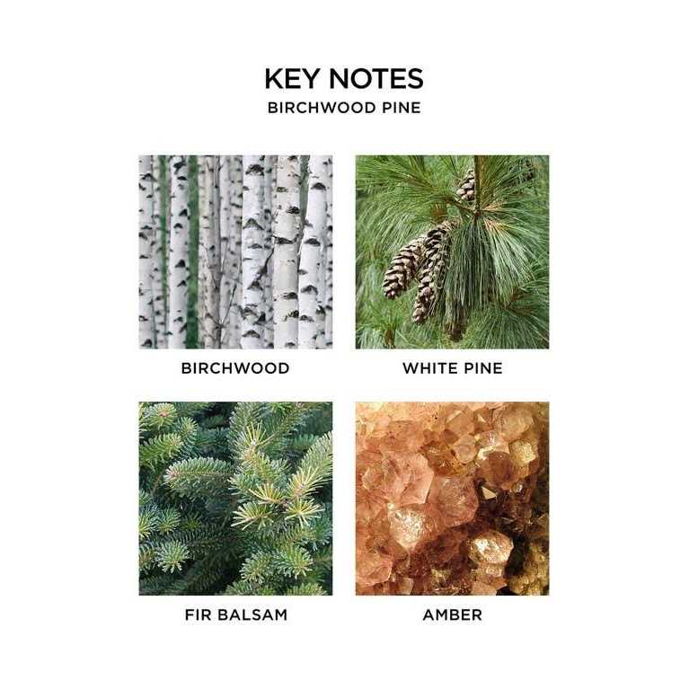 - Key Notes: White pine, fir balsam, and birchwood over a base of rich musk and amber