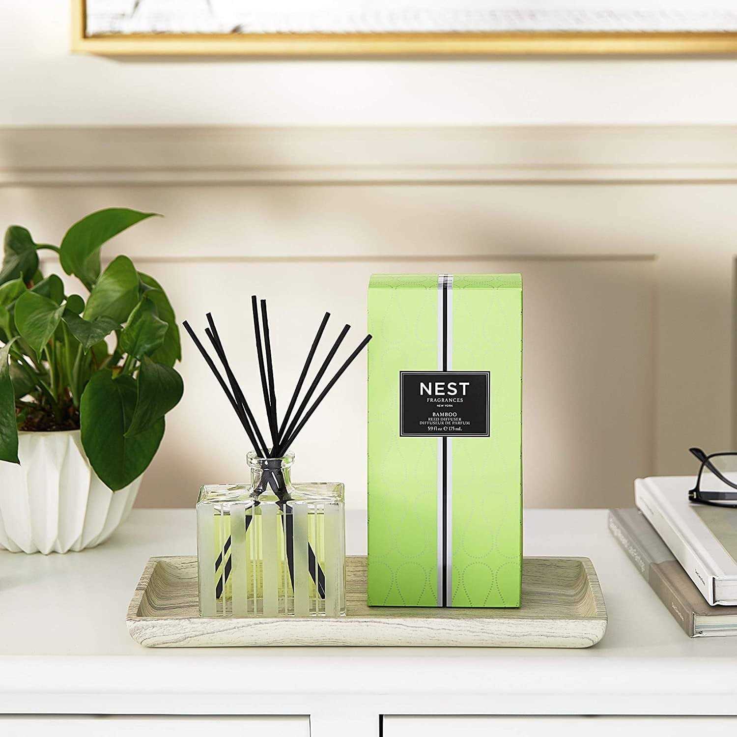 NEST Fragrances present the Bamboo Reed Diffuser. Housed in a luxurious frosted glass bottle, the concentrated essence is made from a careful selection of premium quality oils, which disperse slowly and evenly into the air to fill your abode with a long-lasting aroma that diffuses for up to 90 days. Notes of flowering Bamboo essence create a clean, effervescent scent while a bouquet of white florals adds a delicately feminine touch. Sparkling citrus oils and green accords leave your abode smelling zesty and fresh to uplift and invigorate. Presented in opulent branded packaging, the reed diffuser makes an ideal gift. Lasts for approx. 90 days.