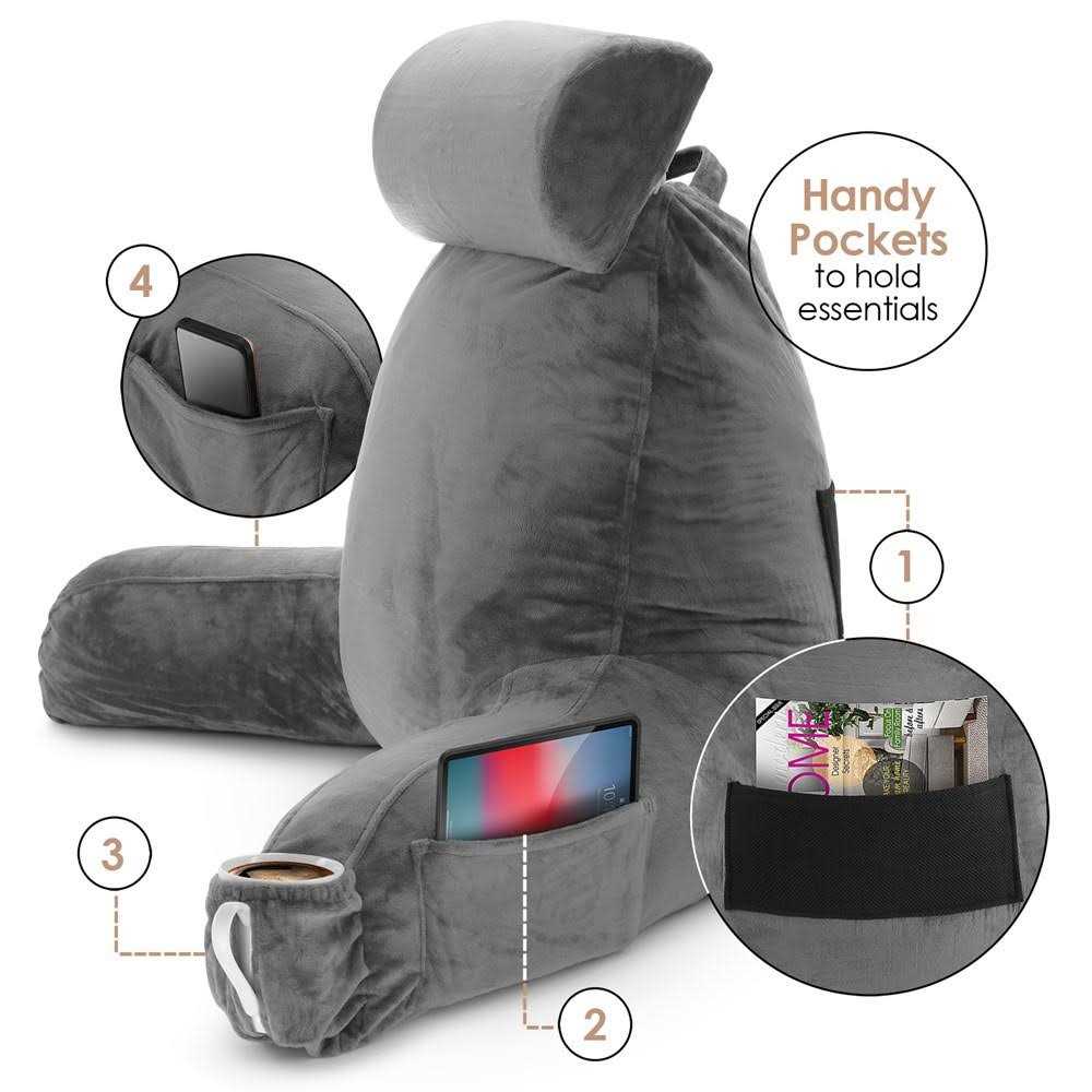 Nestl Backrest Reading Pillow with Arms Shredded Memory Foam Back Support Bed Rest Pillow