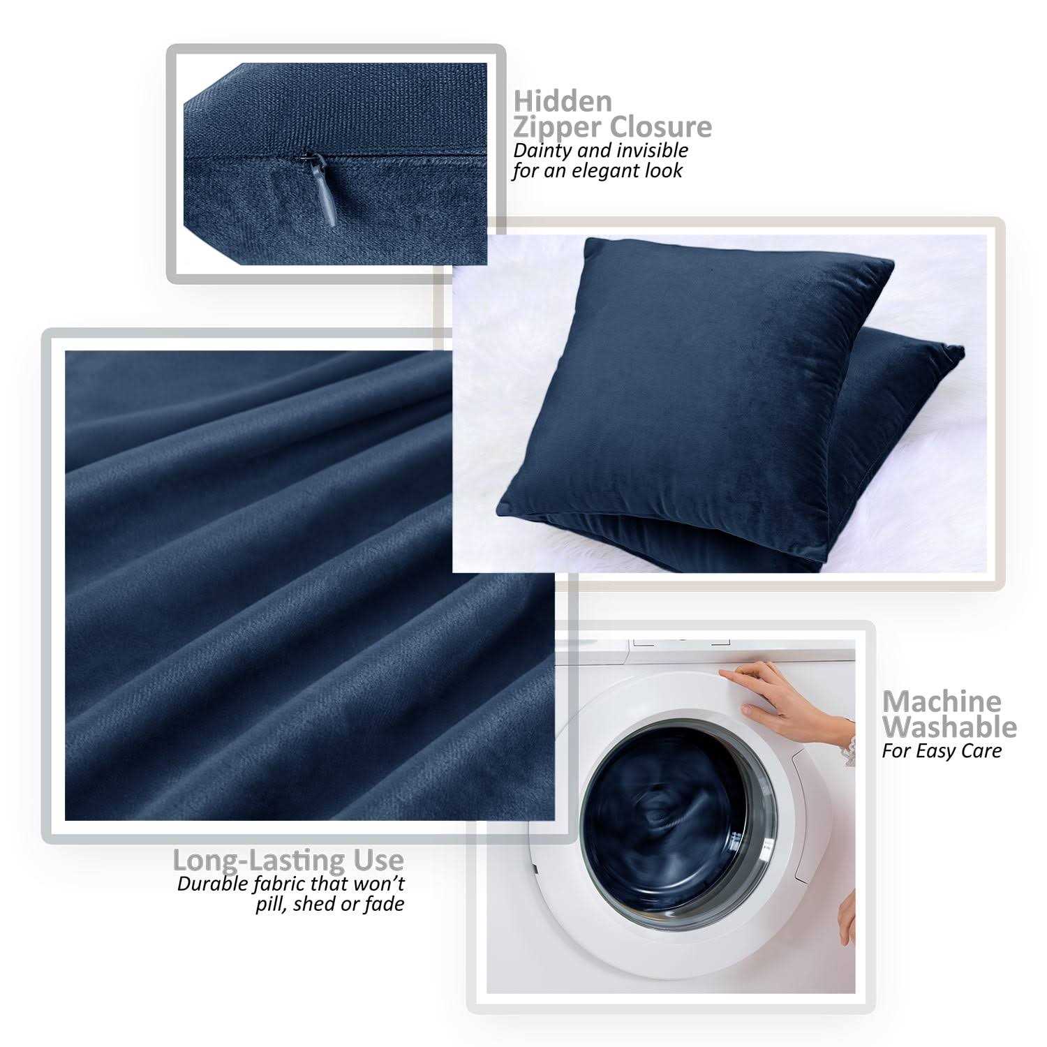 Nestl Velvet Throw Pillow Covers Decorative Square Solid Soft Cushion Cover Pillow Cases, 18 inch x 18 inch, Navy Blue, Pack of 4, Size: 18 x 18