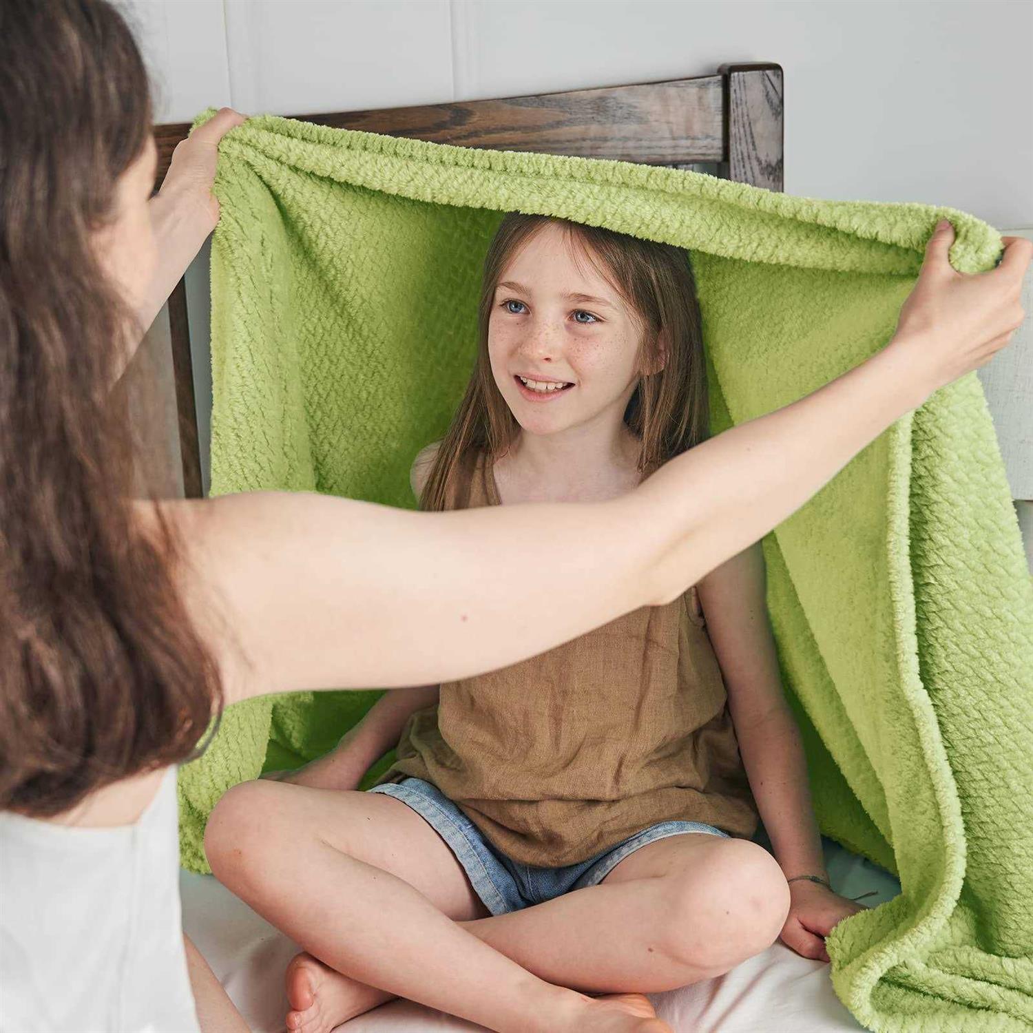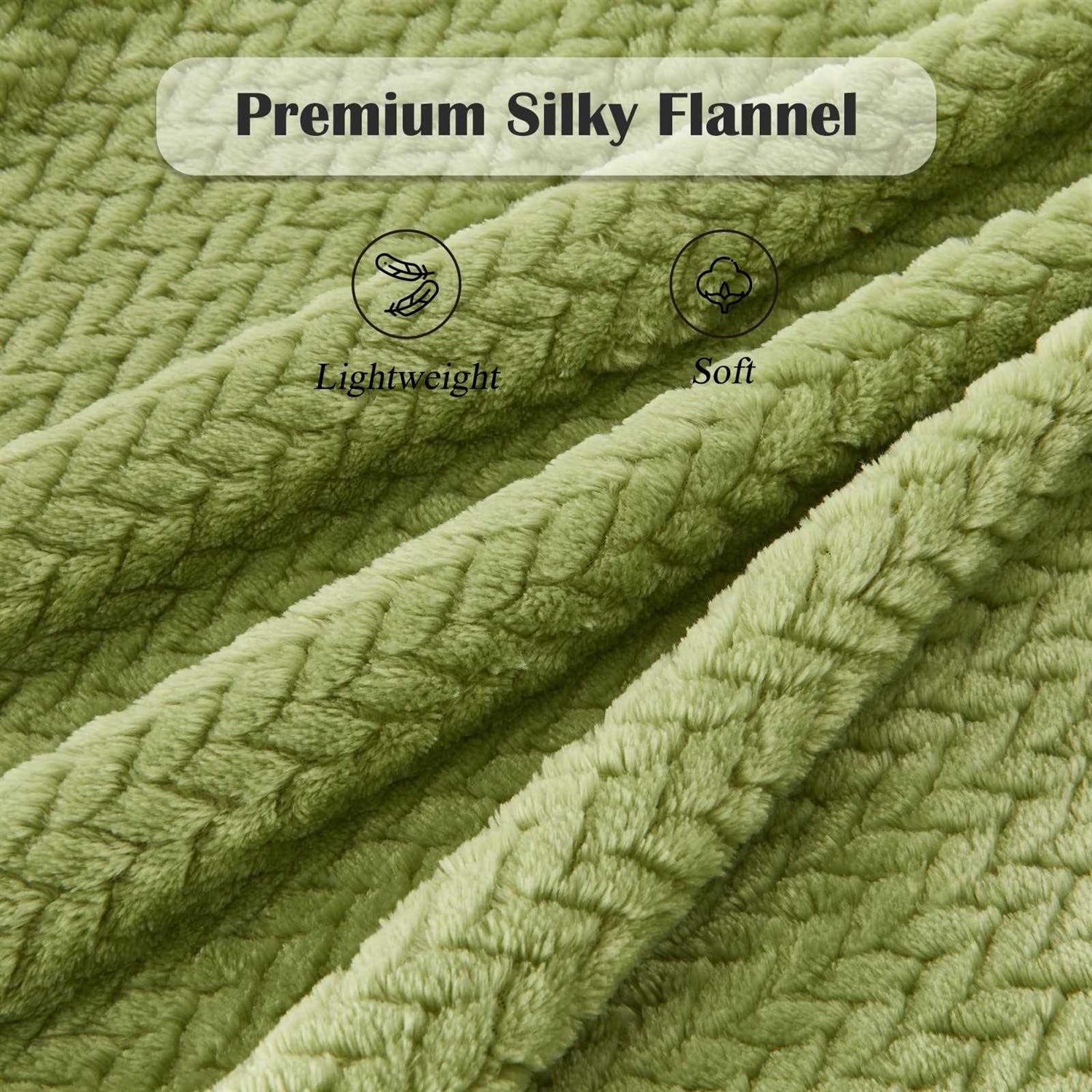 NEWCOSPLAY Super Soft Throw Blanket Green Premium Silky Flannel Fleece Leaves Pattern Lightweight Bed Blanket All Season Use (Green, Throw(50″x60″))