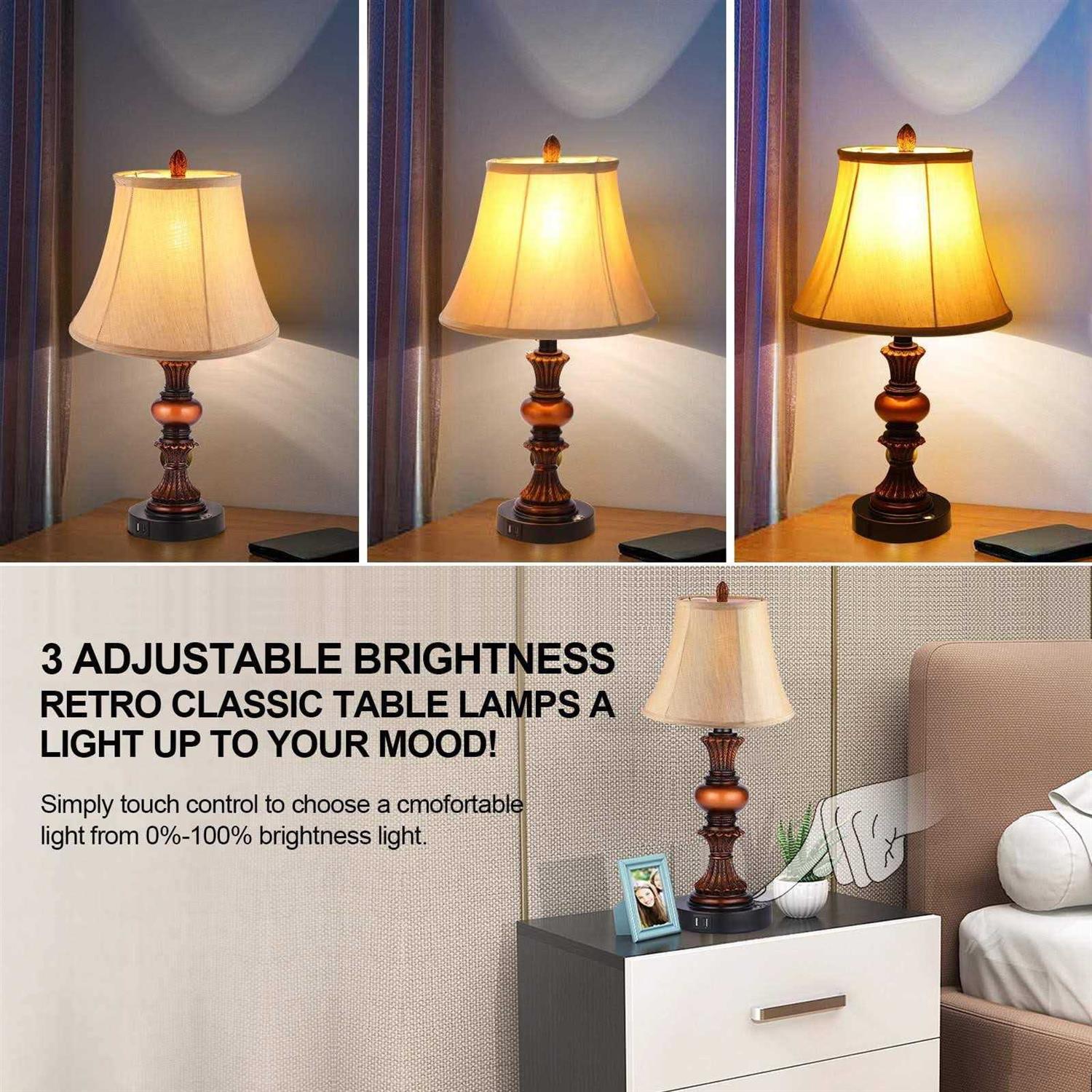 Retro-style design3-level brightness adjustment – Touch switch and adjustment – Tall Wood Carved Nightstand Lamp with double USB Charging Ports. One-button touch control, 3 different levels of brightness options (low, medium, high): Low Brightness – Great for bedside table lamps or nurseries. – Medium Brightness – Great for everyday light use, romantic meals, watching movies, High Brightness – Great for reading, working, playing with electronics or home life. – One lamp can meet your various lighting needs. At the same time, the table lamp is a great decoration, with a timeless and classic look, the traditional retro engraved design lamp set is the ideal decoration for your home. The traditional vintage engraved design light set is the ideal decoration for your home, which can transform your home into a modern classic, elegant atmosphere.