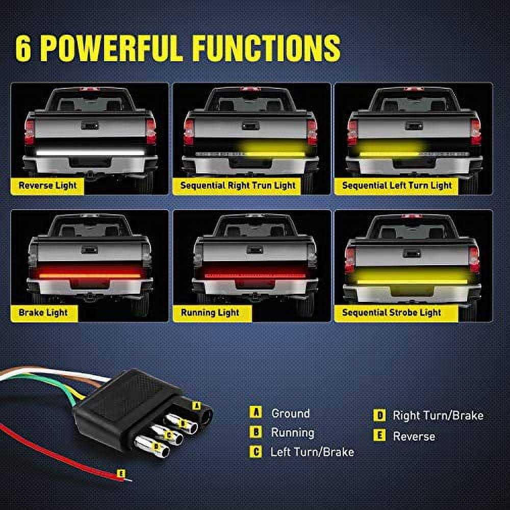 - 6 Full Functions: Dark red running light, bright red brake light, white reverse light, sequential amber turn signals, sequential strobe light