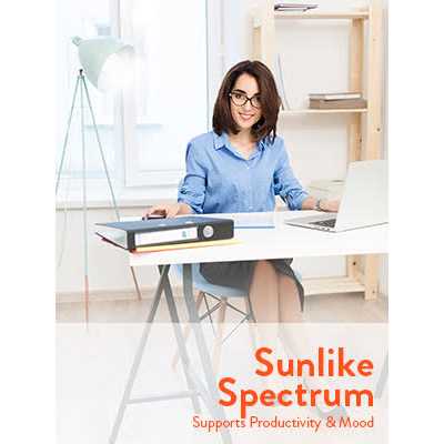 - Sunlike Spectrum supports good mood, energy and productivity.